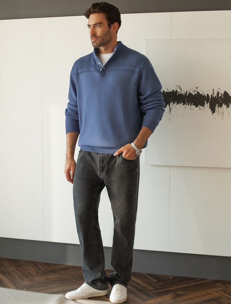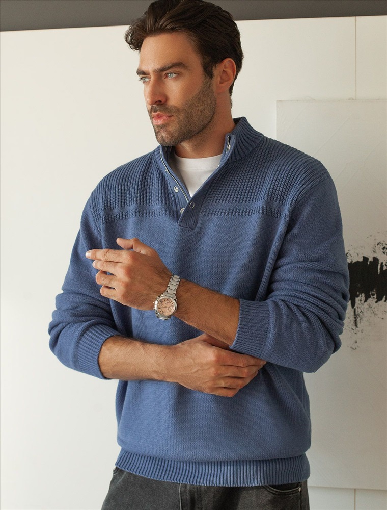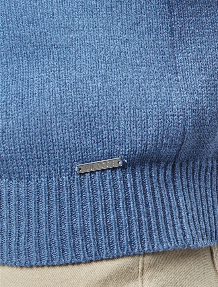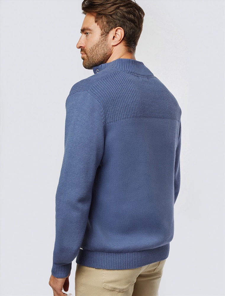 Состав: 60%Хлопок 40%ПАН (акрил) Свитер фактурной вязки с застежкой на крупные кнопки выполнен из мягкой хлопковой пряжи с добавлением акрила. Модель из такого материала не препятствует циркуляции воздуха, но при этом хорошо сохраняет тепло и не колется, поэтому ее комфортно носить на голое тело. С помощью кнопок можно регулировать высоту воротника и носить свитер по-разному. Внизу изделия нашивка бренда из эко-кожи.