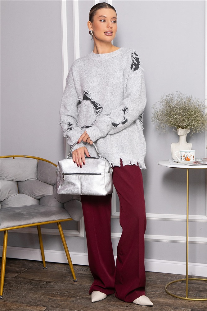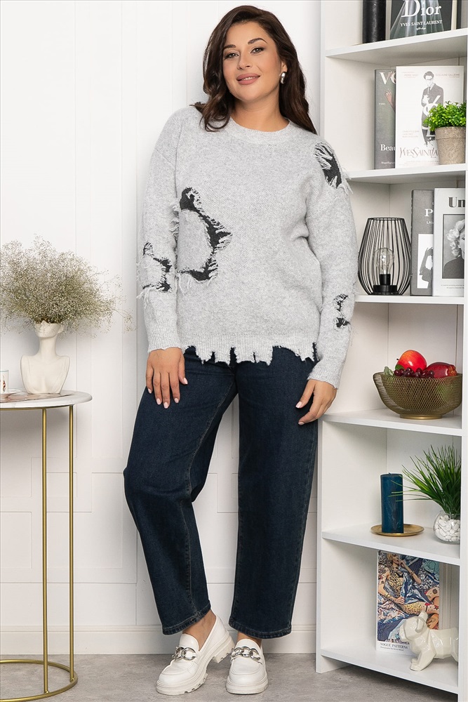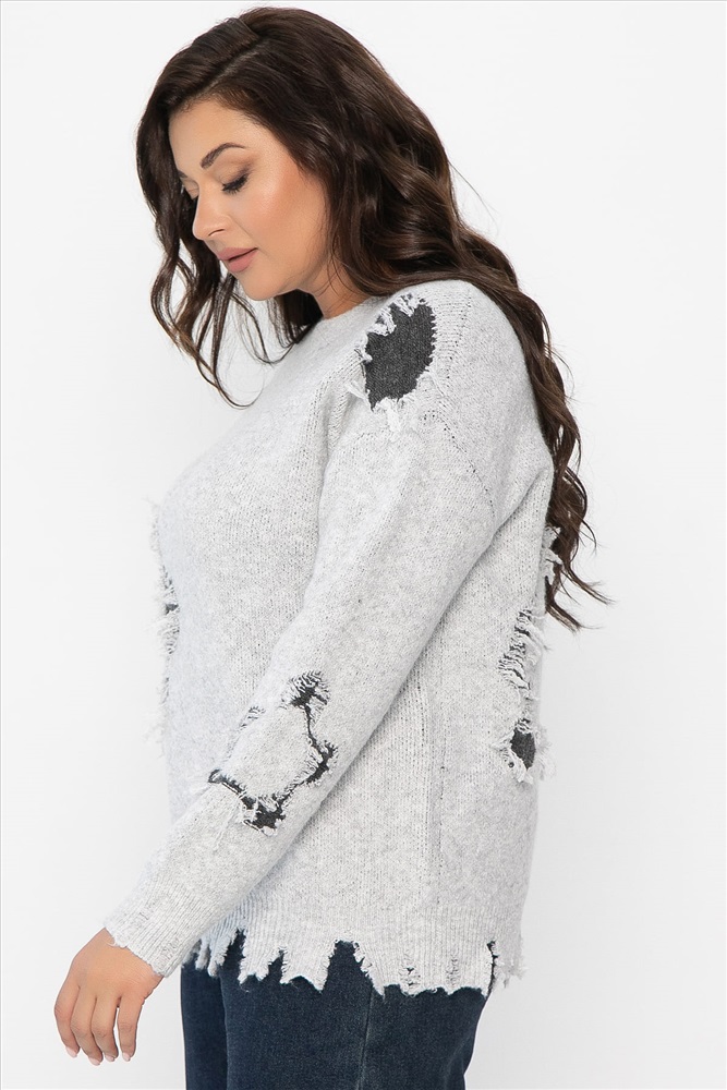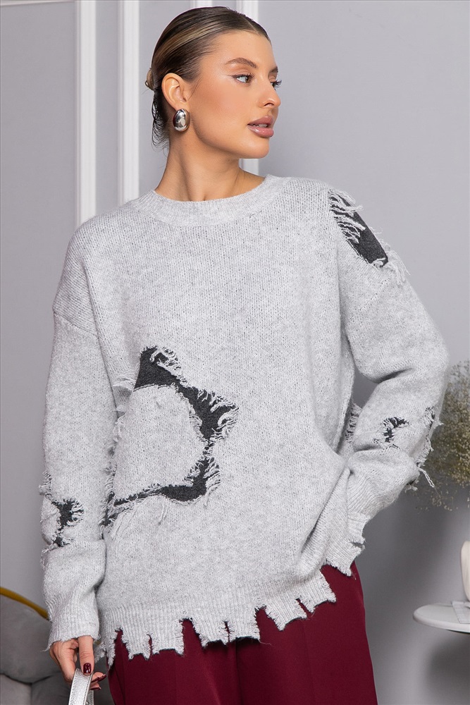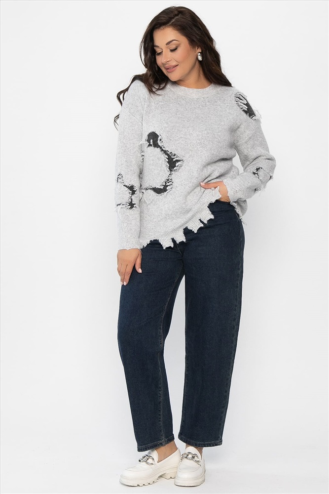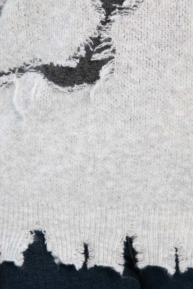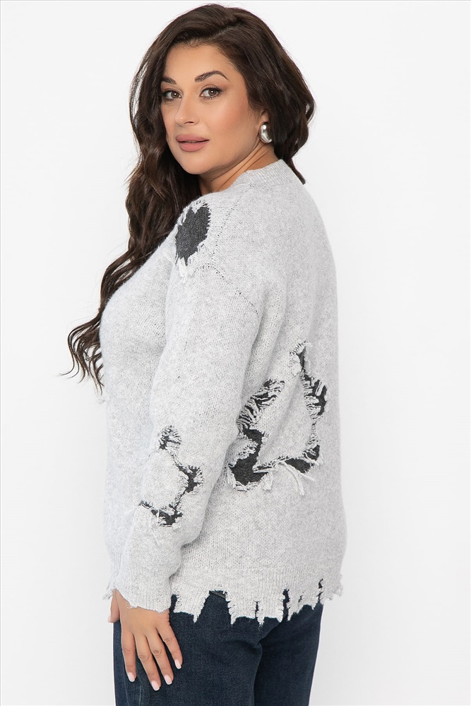 Женский рваный свитер — это яркий элемент, который станет изюминкой повседневного гардероба. Мягкий и приятный на ощупь материал обеспечивает комфорт на протяжении всего дня. Свободный крой не стесняет движений и дарит ощущение легкости и уверенности. Оригинальный рваный дизайн с изображением черного цветка придаёт изделию уникальность. Это идеальный выбор для создания стильных и комфортных образов!