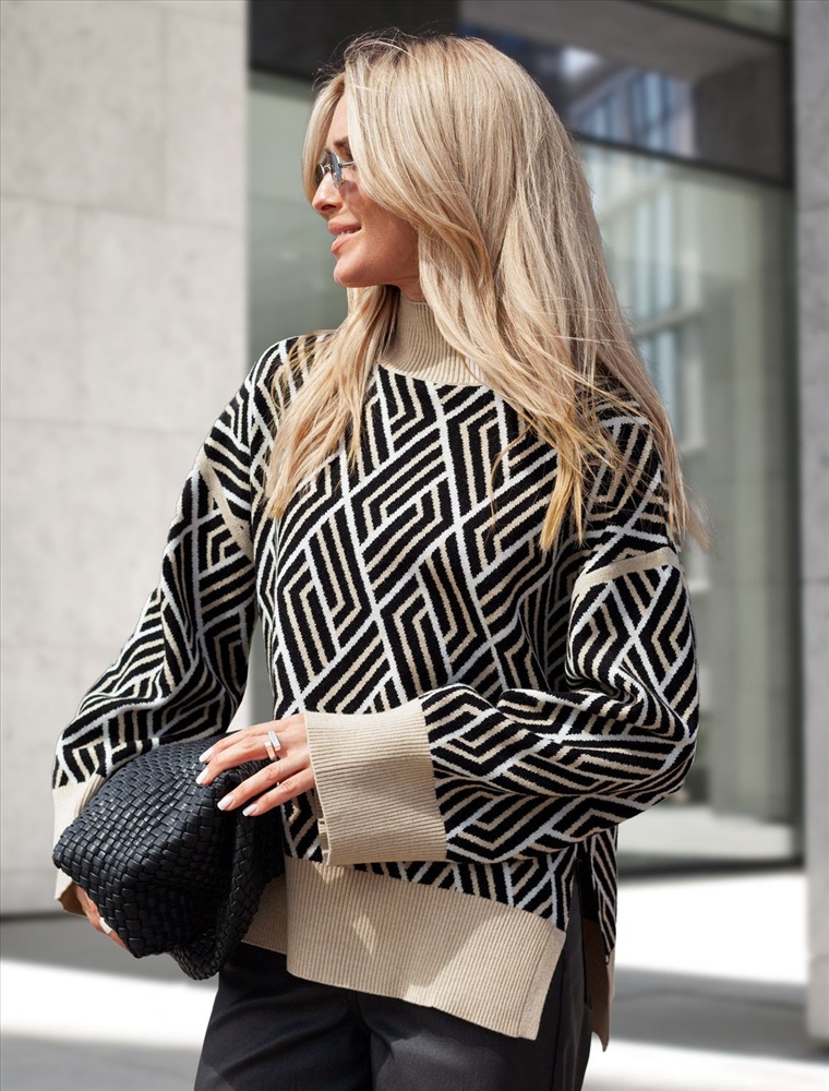 Свитер жаккардовой вязки выполнен из нежной пряжи на основе вискозы с добавлением кашемира. Свободная модель со спущенным плечом дополнена боковыми разрезами, что делает образ еще более расслабленным. Совет стилиста: такой джемпер может стать ключевым акцентом в сдержанном комплекте. Выбирайте однотонные низы в тон широкой рибаны или на контрасте.