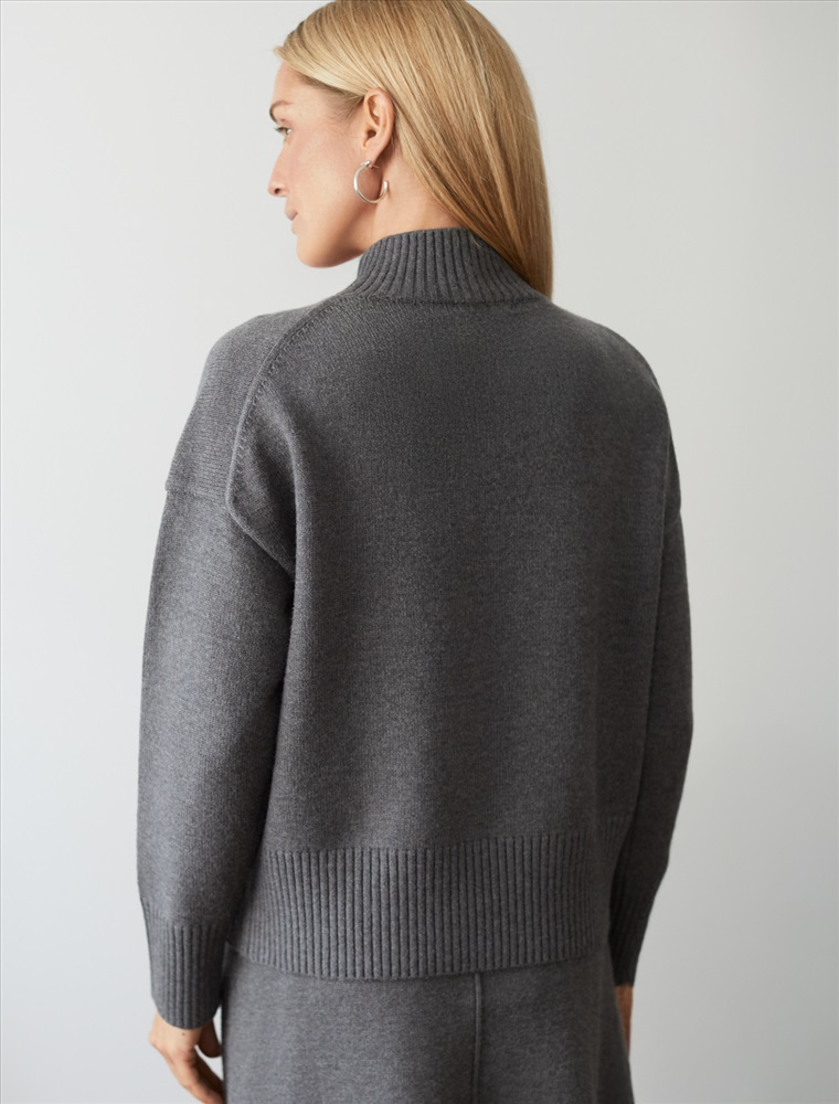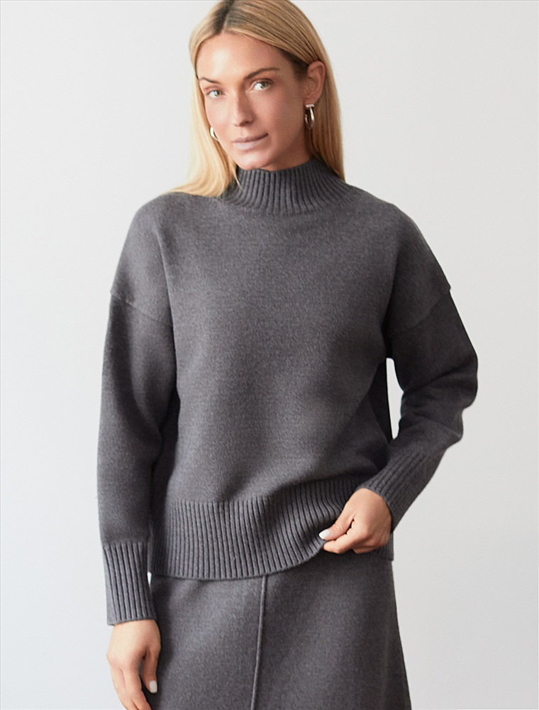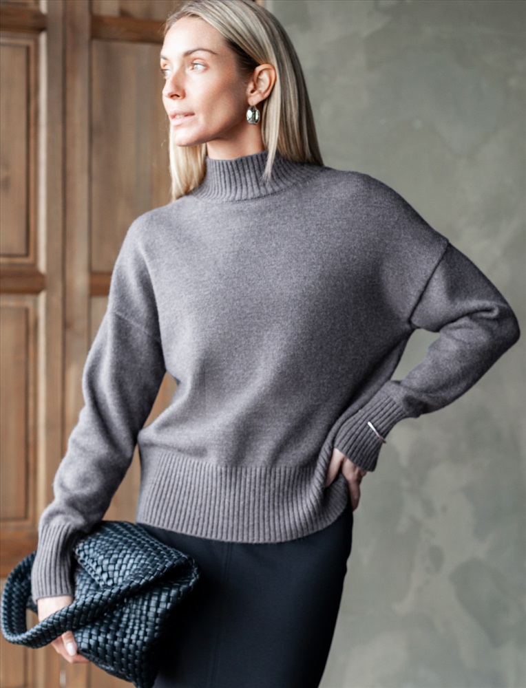 Плотность: 7 GG Размер товара на первом фото: 42 Свитер темно-серого цвета с высоким воротом связан из высококачественной пряжи с кашемиром — идеальное сочетание мягкости и практичности. Пряжа с кашемиром придаёт ему бархатистую нежность и тонкую структуру, каждое прикосновение с которой, напоминает о тепле и уюте в прохладные дни. Благодаря нежной текстуре материала этот вариант отлично подходит даже для чувствительной кожи, не вызывая раздражения и дискомфорта в течение дня. Спущенная линия плеча придает свитеру расслабленный вид, подчеркивая актуальный стильный образ обладательницы. Универсальный крой и длина подходит для разных типов фигуры, в том числе и на большие размеры, свободный фасон не стесняет движений, а оверсайз силуэт актуален в этом сезоне и выглядит современно. Длинный рукав с широкими манжетами защищает от холода, делая этот вариант особенно практичным в осенне-зимний период. Такой теплый свитер станет надежным спутником в межсезонье и зимние дни, сочетая практичность, комфорт и стиль. Сочетается в костюме с брюками D38.013, D38.012 и юбкой D36.016 Комментарии к товару