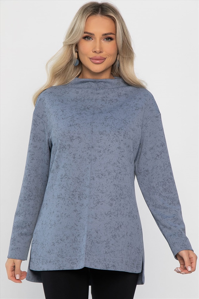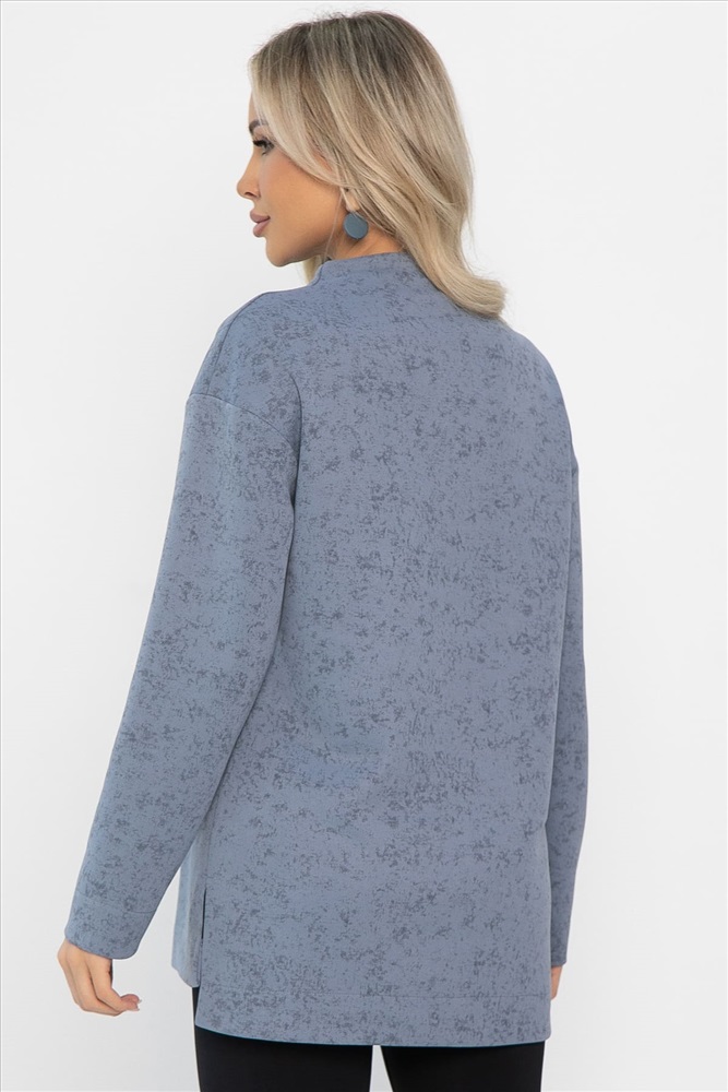 Свободный крой и спущенные рукава создают непринуждённый образ, а цельнокроеная стойка придаёт ему современный вид. Разрезы по бокам обеспечивают свободу движений и делают силуэт более интересным.
