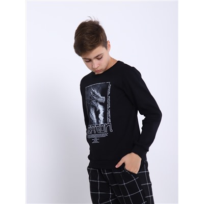 Черная детская толстовка для мальчика подростка в стиле кэжуал прекрасно комплектуется с джинсами, брючками и трико. Её натуральный хлопковый состав позволяет ребенку чувствовать себя комфортно на протяжении всего дня. Небольшой начес с внутренней стороны делает ее теплой и мягкой. Актуальный принт - особенность этой модели кофты. Джемпер можно носить под жаккеты в школу на занятия. Свитшот для юношей имеет хорошую посадку на фигуре, поэтому очень удобен. Рекомендуем в качестве подарка для юного модника, он оценит! Дарите заботу и любовь вместе с продукцией фабрики ЛАДОШКИ! Если Вы остались довольны покупкой и готовы поделиться эмоциями, оставьте отзыв, нам будет очень приятно! Кофту ищут по словам: черная кофта длинный рукав на манжете хлопковая теплая мужская для спорта прогулок путешествий худи олимпийка в школу в поездку.