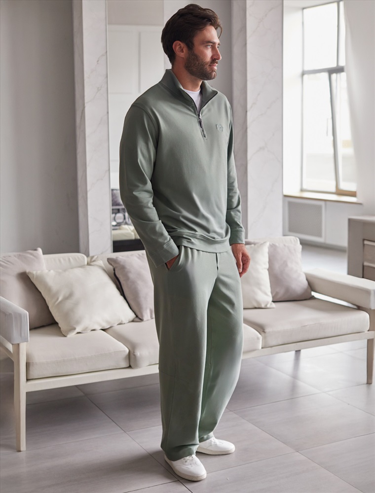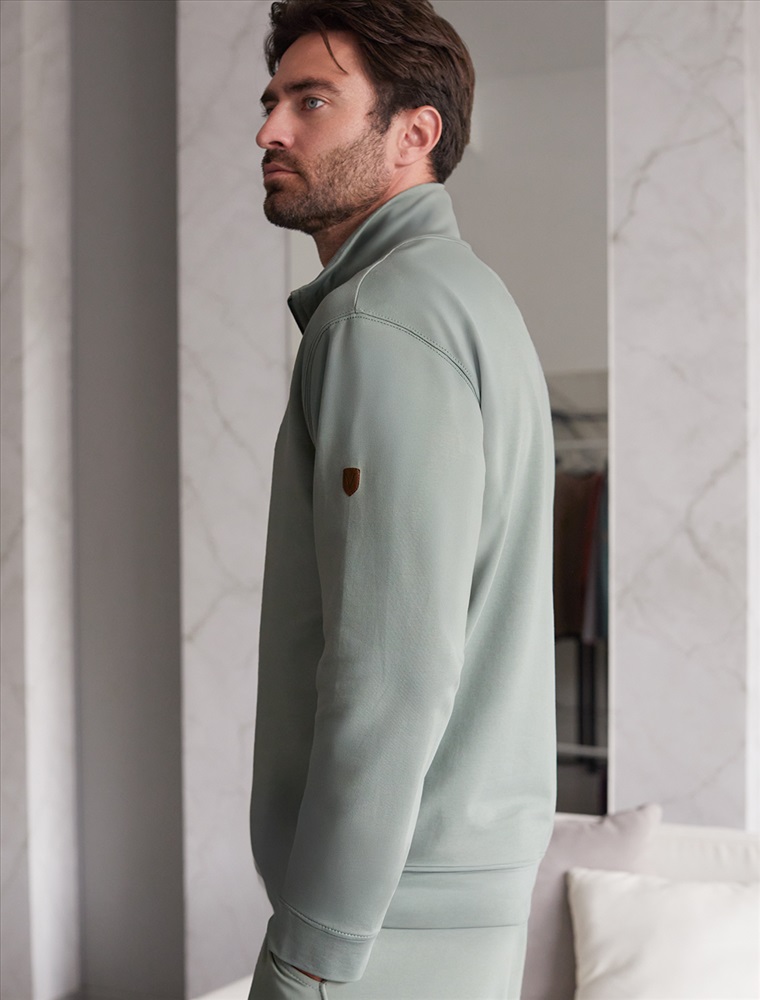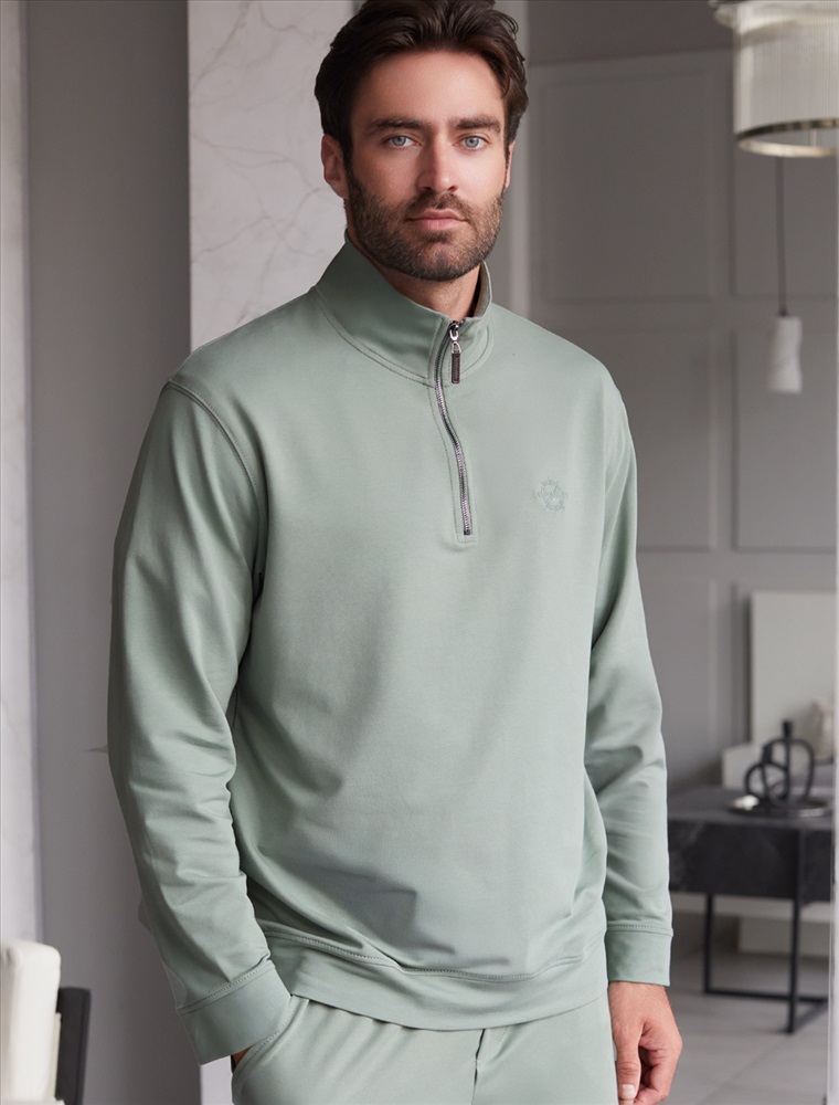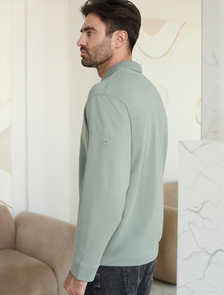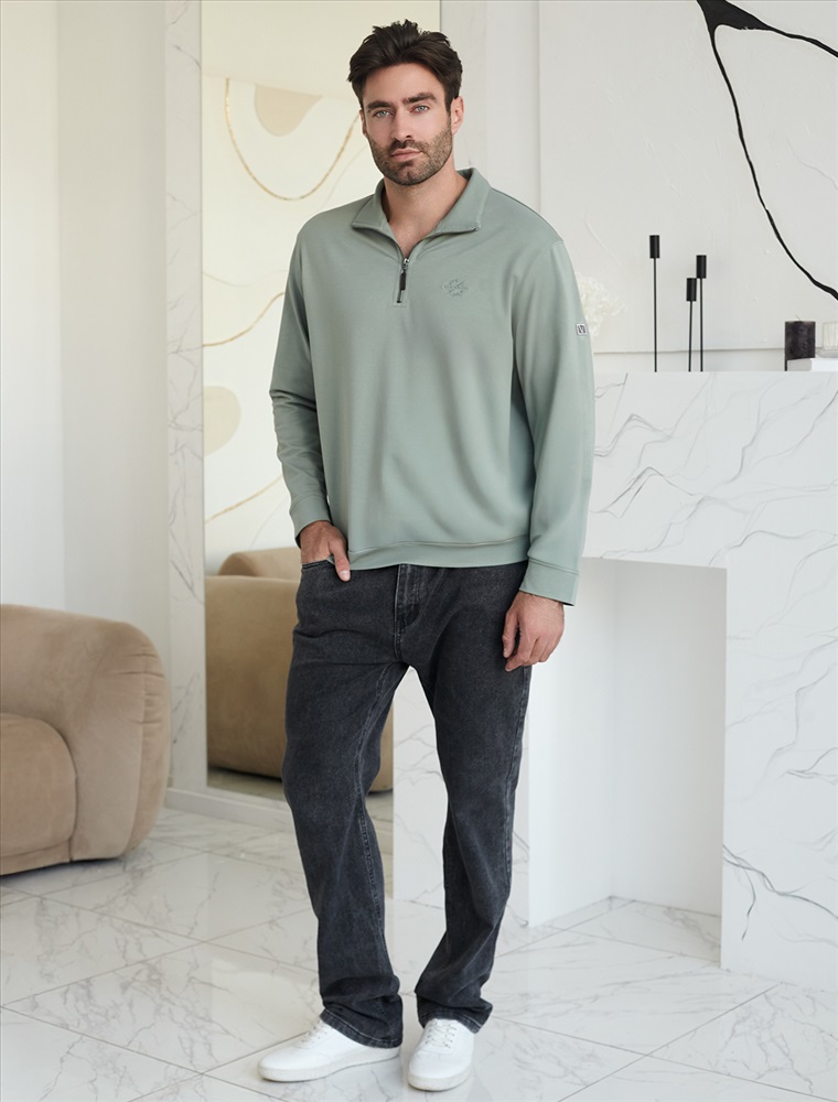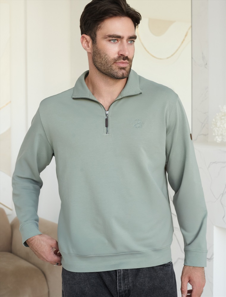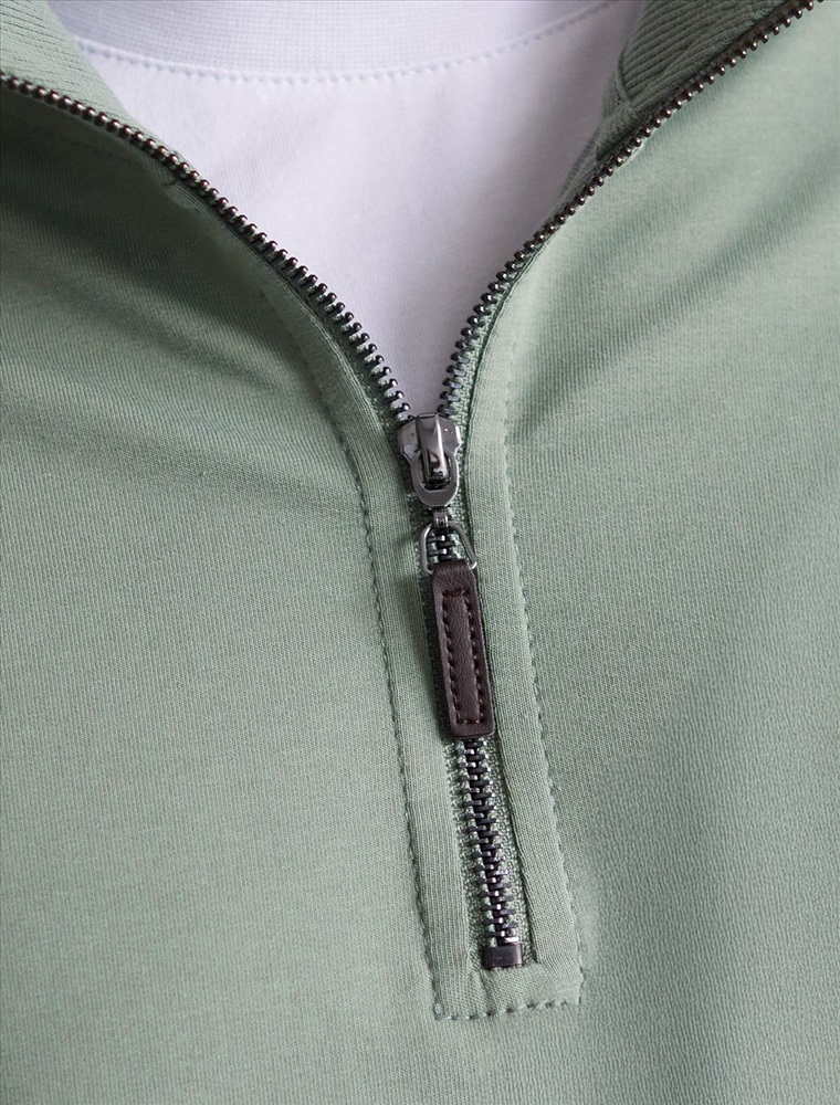 Уютный и стильный свитшот светло-оливкового цвета с воротом-стойкой на молнии - идеальный выбор для повседневного образа. Выполнен из премиального футера двухнитки с эластаном, Изнаночная сторона невероятно мягкая, что делает материал особенно приятным к телу. Благодаря эластичной структуре ткань хорошо тянется, сохраняет форму после длительной носки и обеспечивает свободу движений даже в самых активных буднях, а натуральный состав обеспечивает отличную воздухопррницаемость, позволяя коже дышать и не перегреваться.