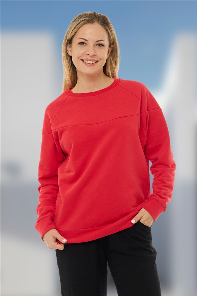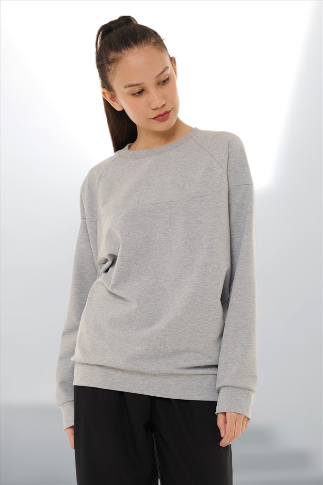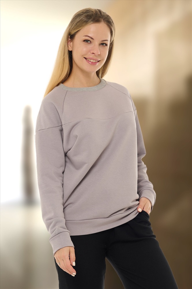 Состав: 92-хб 8-пэ Рост модели на фото, см: 170 Силуэт: свободный Вырез горловины: круглый Тип рукава: реглан Артикул: 3452-05