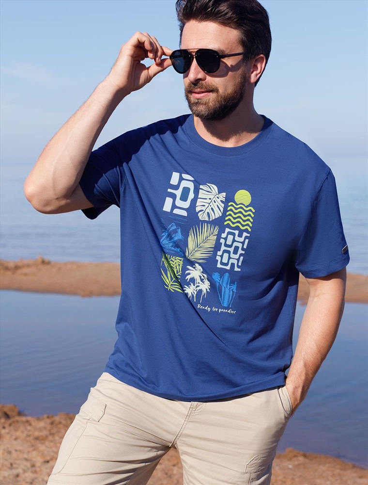 Плотность: 170 Г/м2 Перевод принта: Ready for paradise - готов к райскому отдыху. Футболка свободного кроя выполнена из премиального хлопка. Авторский принт нанесен красками с устойчивым покрытием. Благодаря эластану, носить изделие очень комфортно, и оно сохранит свой безупречный вид в течение долгого времени. На рукаве нашивка из эко-кожи с логотипом бренда.