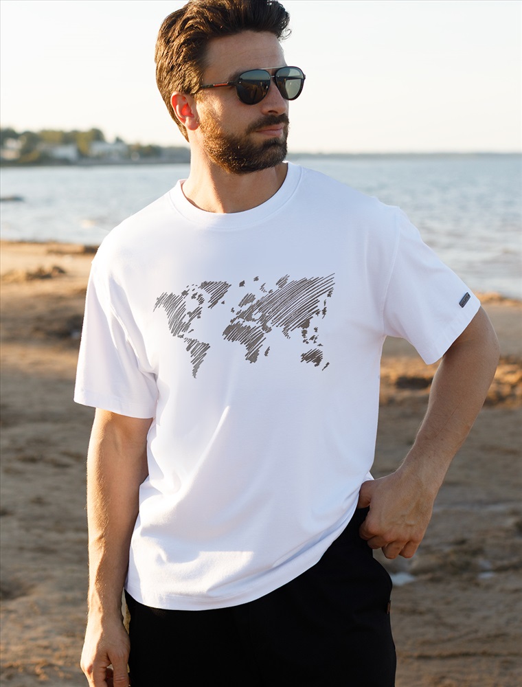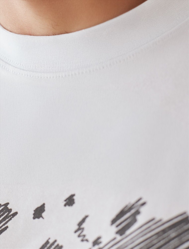 Плотность: 170 Г/м2 Футболка свободного кроя выполнена из премиального хлопка. Авторский принт нанесен красками с устойчивым покрытием. Благодаря эластану, носить изделие очень комфортно, и оно сохранит свой безупречный вид в течение долгого времени. На рукаве нашивка из эко-кожи с логотипом бренда.