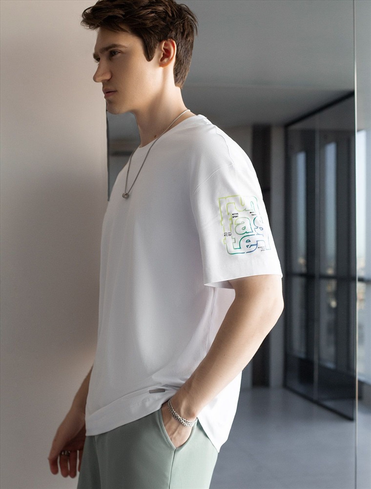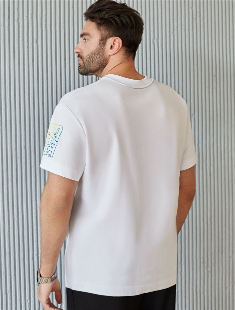 Плотность: 170 Г/м2 Перевод принта: Run faster, active sport, marathon training, alt dept NYC 1987 - беги быстрее, активный спорт, подготовка к марафону, спортивный колледж Нью-Йорк 1987. Футболка свободного кроя выполнена из премиального хлопка. Авторский принт нанесен красками с устойчивым покрытием. Благодаря эластану, носить изделие очень комфортно, и оно сохранит свой безупречный вид в течение долгого времени. На рукаве нашивка из эко-кожи с логотипом бренда.