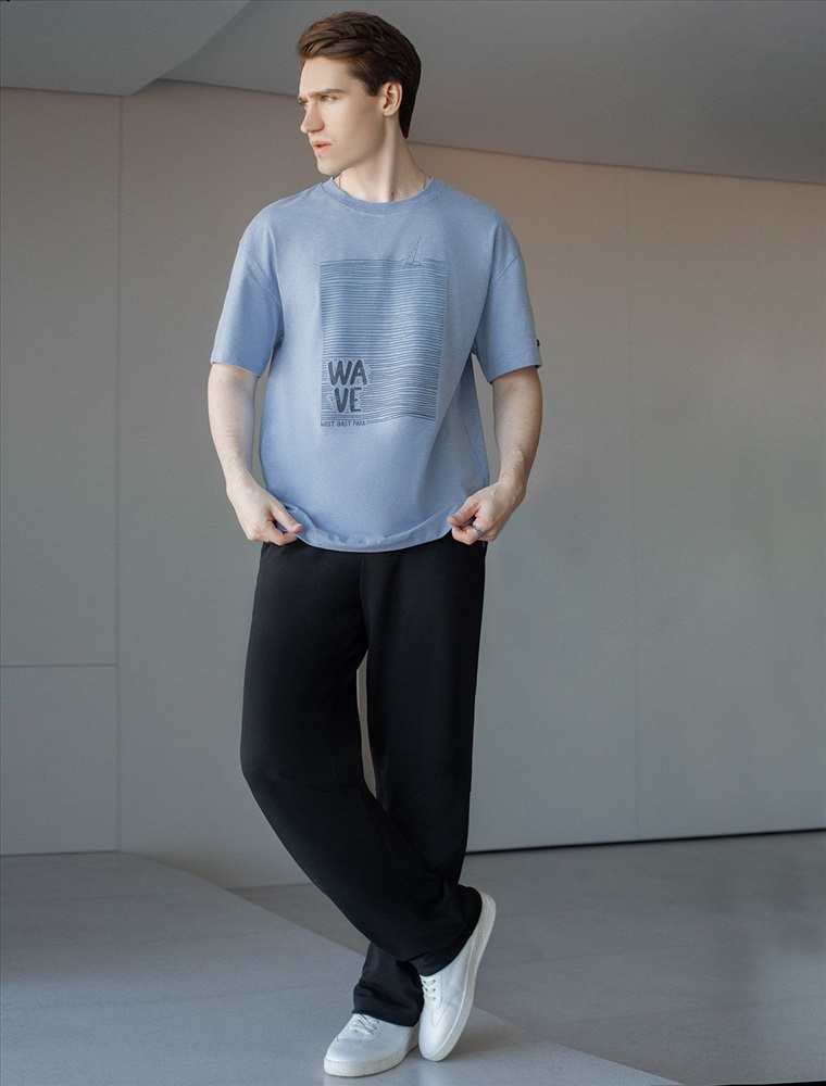 Перевод принта: Wave west cost park - волна, парк западного побережья. Футболка свободного кроя выполнена из премиального хлопка. Авторский принт нанесен красками с устойчивым покрытием. Благодаря эластану, носить изделие очень комфортно, и оно сохранит свой безупречный вид в течение долгого времени. На рукаве нашивка из эко-кожи с логотипом бренда.