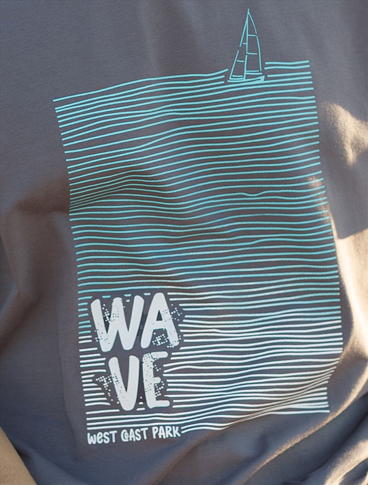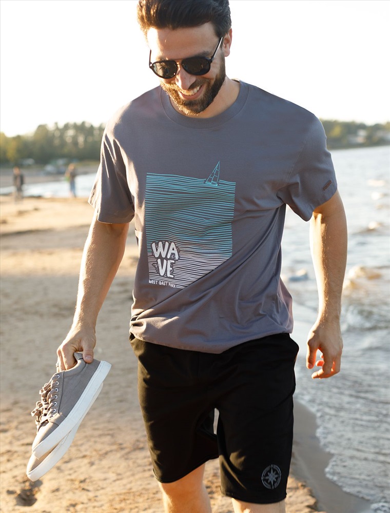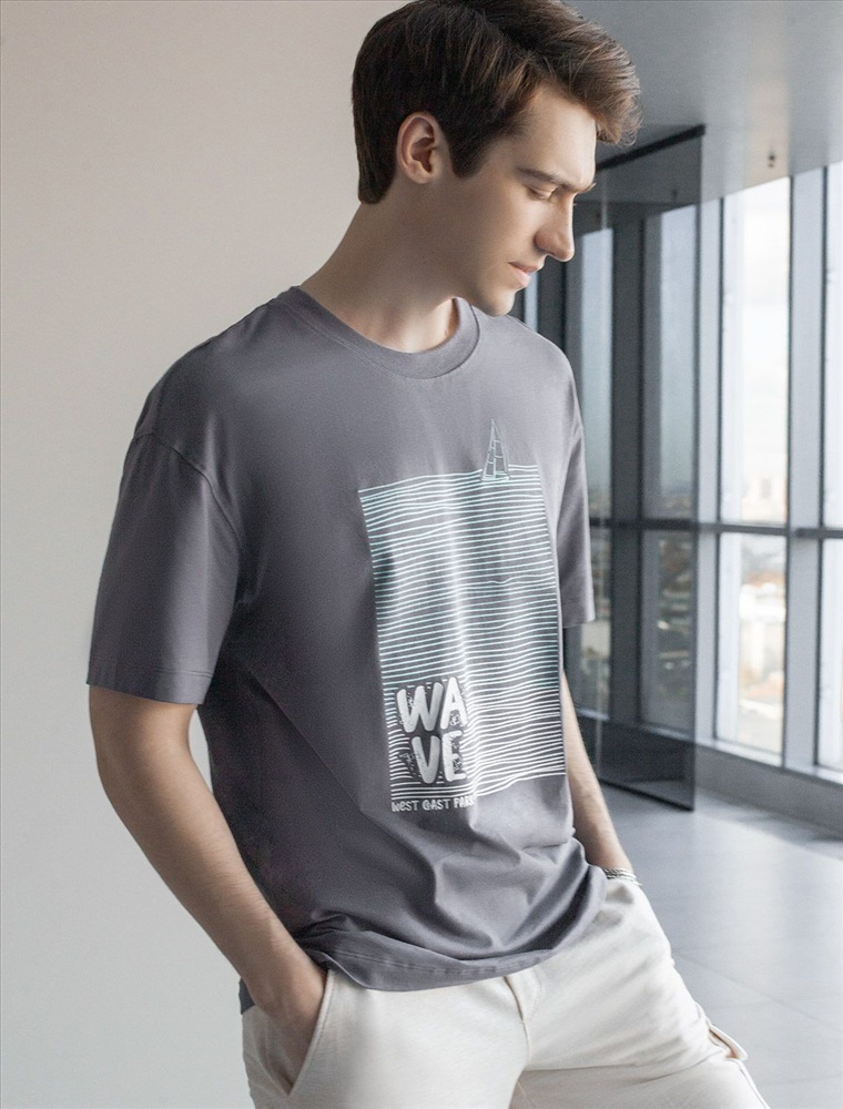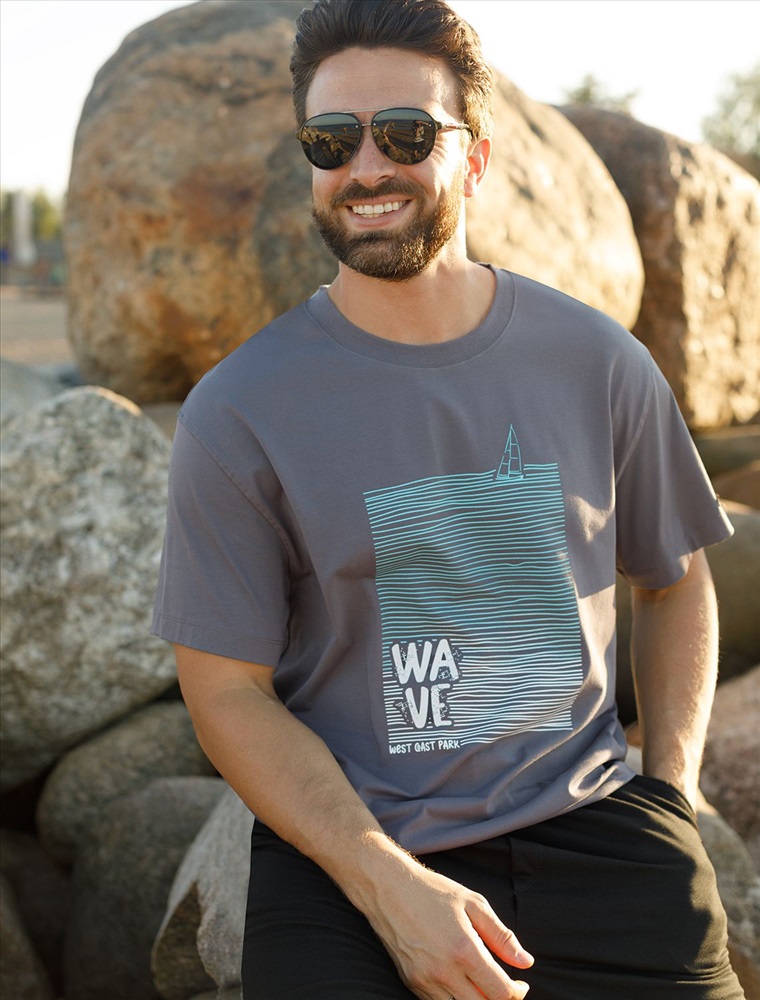 Перевод принта: Wave west cost park - волна, парк западного побережья. Футболка свободного кроя выполнена из премиального хлопка. Авторский принт нанесен красками с устойчивым покрытием. Благодаря эластану, носить изделие очень комфортно, и оно сохранит с