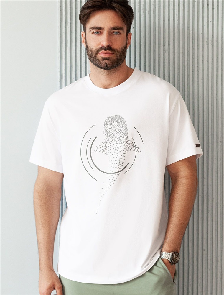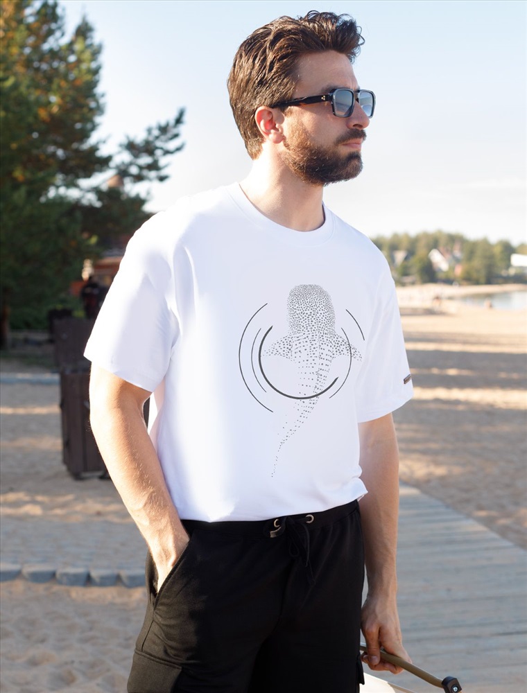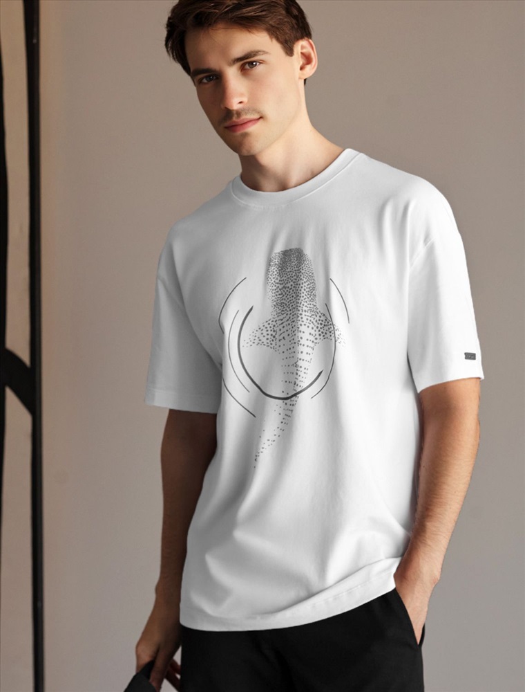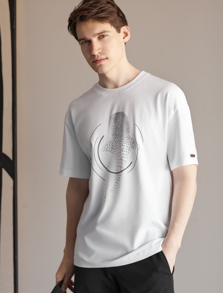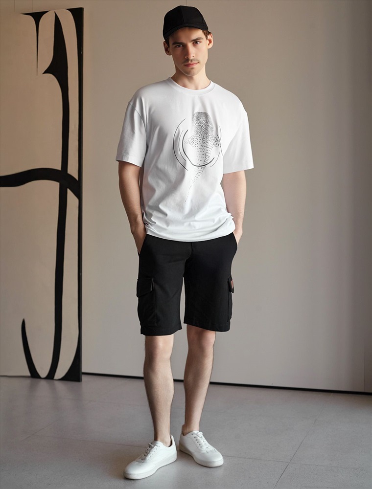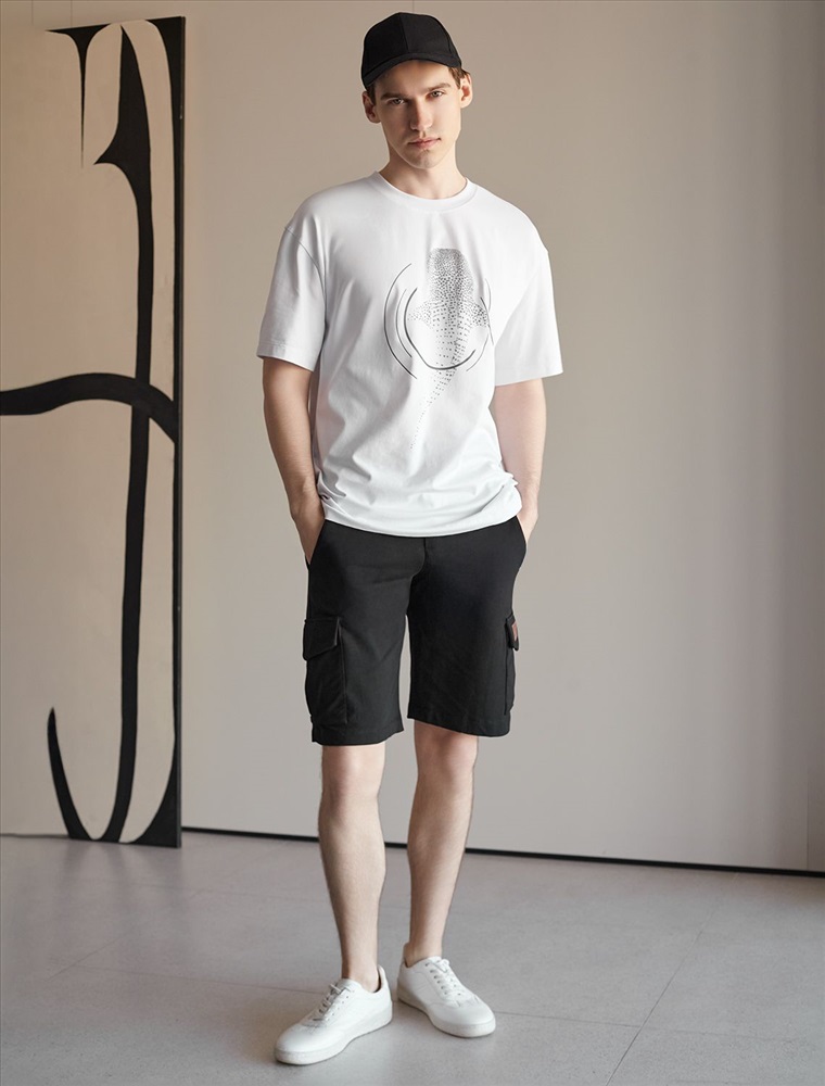 Плотность: 170 Г/м2 Футболка свободного кроя выполнена из премиального хлопка. Авторский принт нанесен красками с устойчивым покрытием. Благодаря эластану, носить изделие очень комфортно, и оно сохранит свой безупречный вид в течение долгого времени. На рукаве нашивка из эко-кожи с логотипом бренда. Комментарии к товару