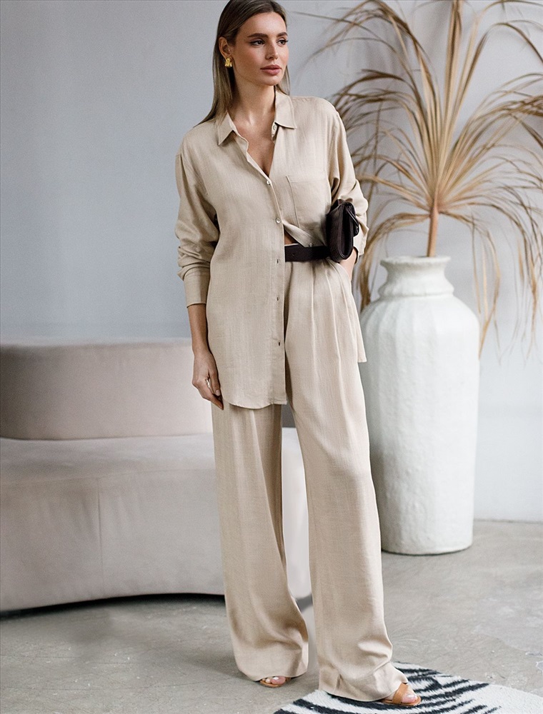 Состав: 70%Вис 30%Лен Брюки-палаццо выполнены изо льна с вискозой. Свободная модель с посадкой на талии визуально вытягивает силуэт и создает роскошный образ. Ткань изящно драпируется, струится по ногам, почти не мнется и сохраняет форму в течении долгого времени. Резинка на поясе. Подходит для любой фигуры и скрывает недостатки. Сочетается в костюме с топом D23.060 и блузками D29.237, D29.244
