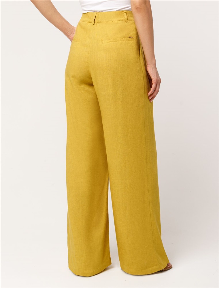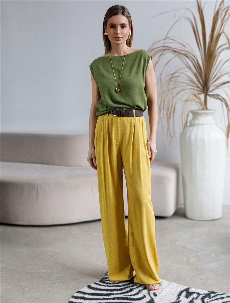 Брюки-палаццо выполнены изо льна с вискозой. Свободная модель с посадкой на талии визуально вытягивает силуэт и создает роскошный образ. Ткань изящно драпируется, струится по ногам, почти не мнется и сохраняет форму в течении долгого времени. Резинка на поясе. Подходит для любой фигуры и скрывает недостатки. Сочетается в костюме с топом D23.060 и блузками D29.237, D29.244
