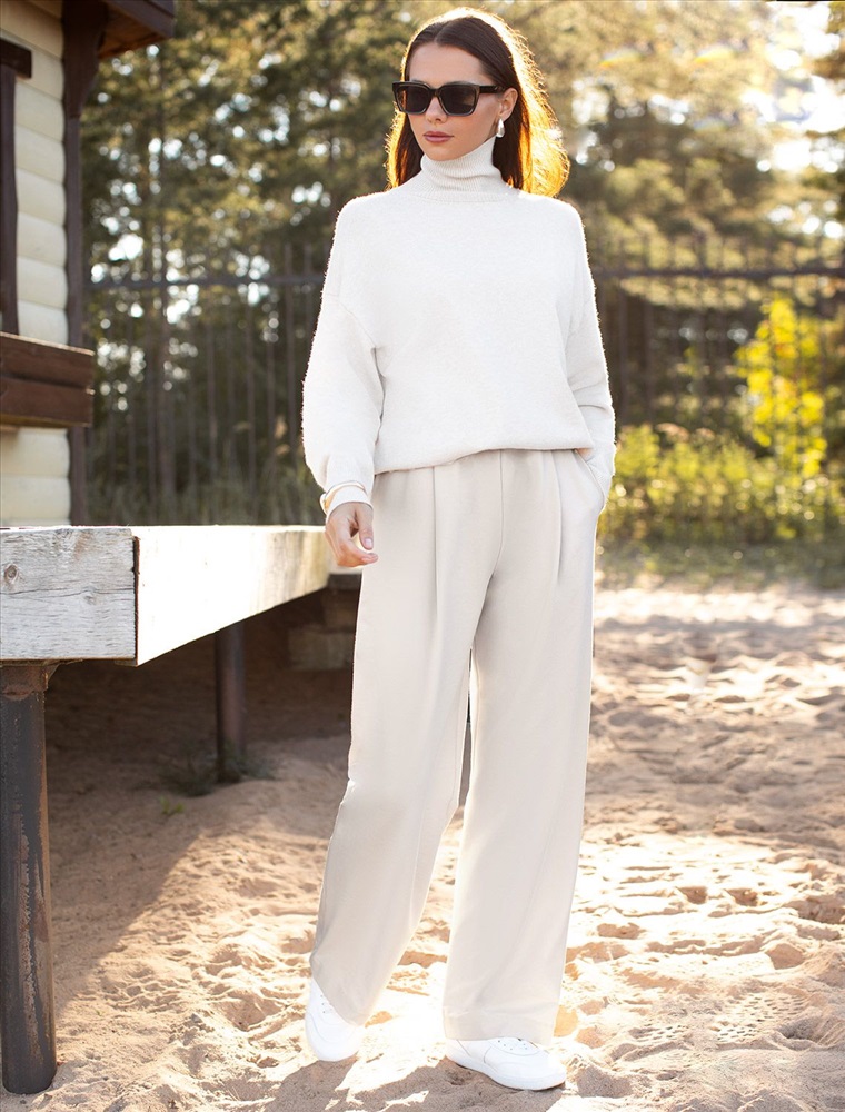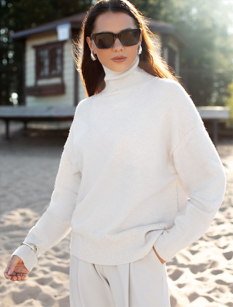 Плотность: 9 GG Размер товара на первом фото: 42 Свитер с классическим воротом выполнен из мягкой пряжи с кашемиром. Лаконичная модель свободного силуэта впишется в любой гардероб. Мягкая пряжа очень приятная к телу, поддержит комфорт на протяжении всего дня. Сочетается в костюме с брюками D38.013, D38.012 и юбкой D36.016 Комментарии к товару