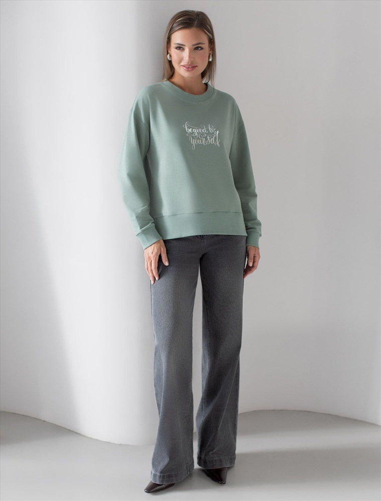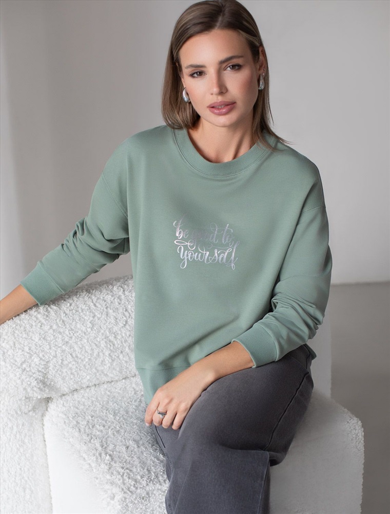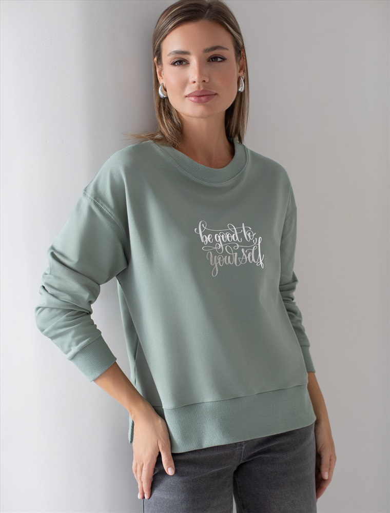 Плотность: 240 Г/м2 Стильный свитшот оливкого цвета из премиального футера двухнитки с эластаном сочетает в себе комфорт и оригинальность. Джемпер выполнен из натурального хлопка, который обеспечивает мягкость и дышащие свойства ткани. Нежный материал дарит ощущение уюта в любое время года, а премиальное качество изготовления гарантирует долговечность и сохранение формы после множества стирок. Особенность изделия — спущенная линия плеча и аккуратные разрезы, которые добавляют современный акцент и делают образ более выразительным. Принт в виде надписи придает индивидуальность, позволяя выделиться без лишней вычурности. Перевод надписи Be good Be yourself - Будь хорошей, будь собой. Дополнен металлическим логотипом бренда. Представлена широкая размерная линейка, включая маленькие и большие размеры, что позволяет подобрать идеальный вариант для разной фигуры и роста. Этот уютный свитшот отлично подходит для повседневной носки благодаря своей комфортной посадке и мягкой текстуре. Он станет универсальным элементом гардероба, легко сочетающимся с различными стилями одежды. Свободный джемпер из футера станет отличным выбором для повседневной носки и активного отдыха, обеспечивая стильный внешний вид и удобство в любое время года. Комментарии к товару