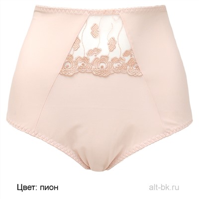 Трусы слип из эластичного трикотажного полотна и неэластичного вышитого кружева. Высокая линия талии.