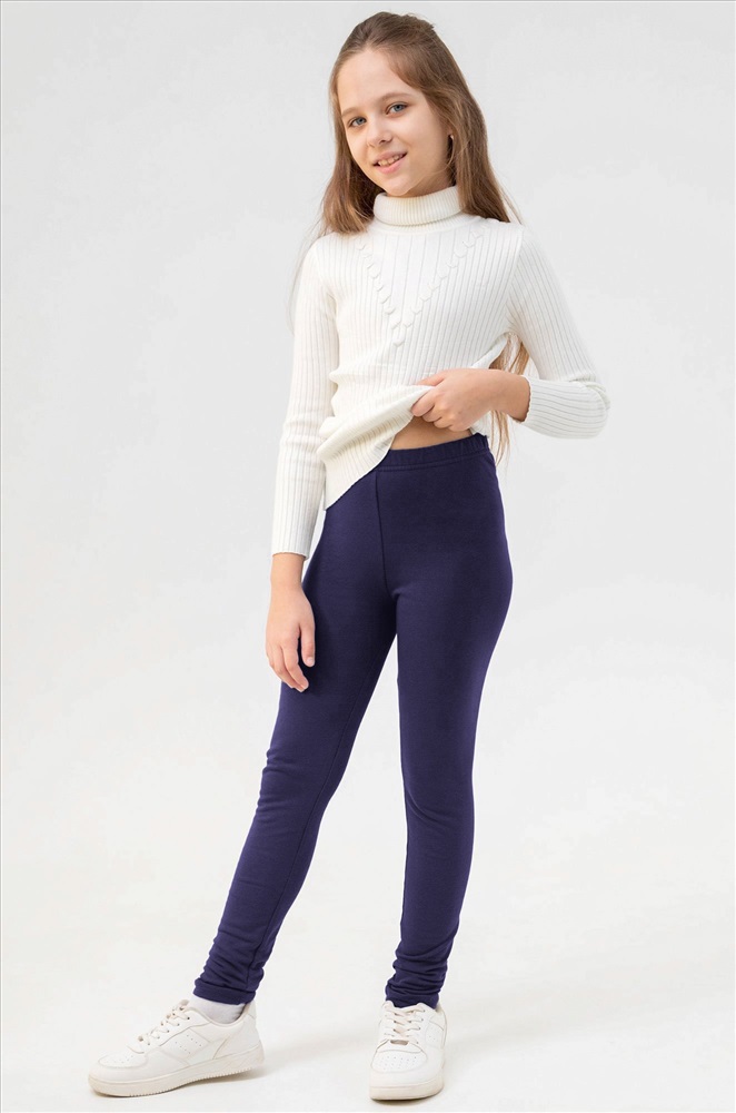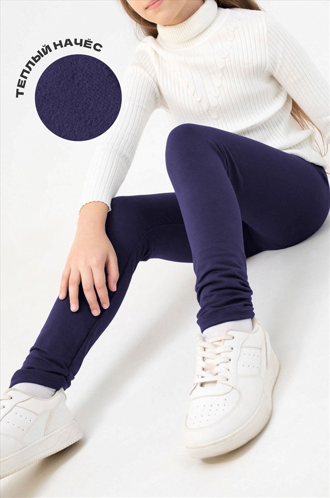 Для комфортных приключений в любую погоду! Тёплые легинсы из футера с начёсом для девочек и подростков подарят уют и свободу движений в холодные дни. Однотонный темно-синий цвет делает их универсальным вариантом для школы, прогулок и отдыха.