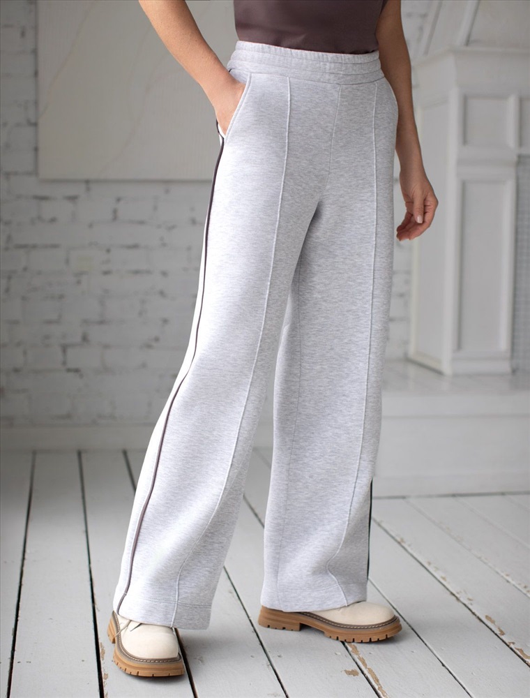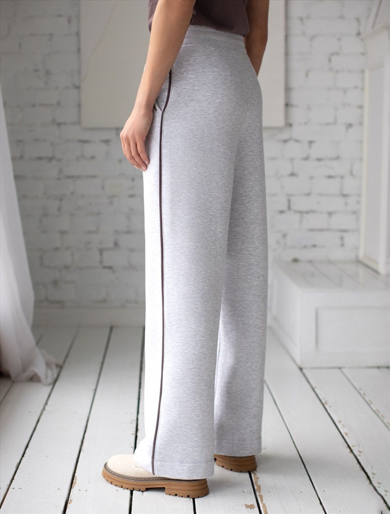 Плотность: 320 Г/м2 Теплые прямые брюки серого цвета с эффектом меланж из эластичного футера трехнитки с начесом созданы для максимального комфорта в холодную погоду. Мягкий материал приятный к телу, хорошо держит форму, не вытягивается и не теряет форму даже при активной носке. Благодаря дышащим свойствам премиального футера, брюки подходят на любую погоду, обеспечивая оптимальный микроклимат и уют. Свободный крой и эластичный широкий пояс делает посадку удобной для разных типов фигуры и размеров, включая большие и маленькие. Застроченные стрелки визуально вытягиват силуэт и подчеркивают эстетичнось повседневных брюк, а контрастные тонкие лампасы добавляют актуальности образу. Благодаря особенностям трехниточного плетения и внутреннему слою с начесом, эти брюки отлично сохраняют тепло в холодные осенние и зимние дни, при этом в них вы будете выглядеть модно и современно. Вы можете составить комплект с артикулами: D49.143 и D49.142
