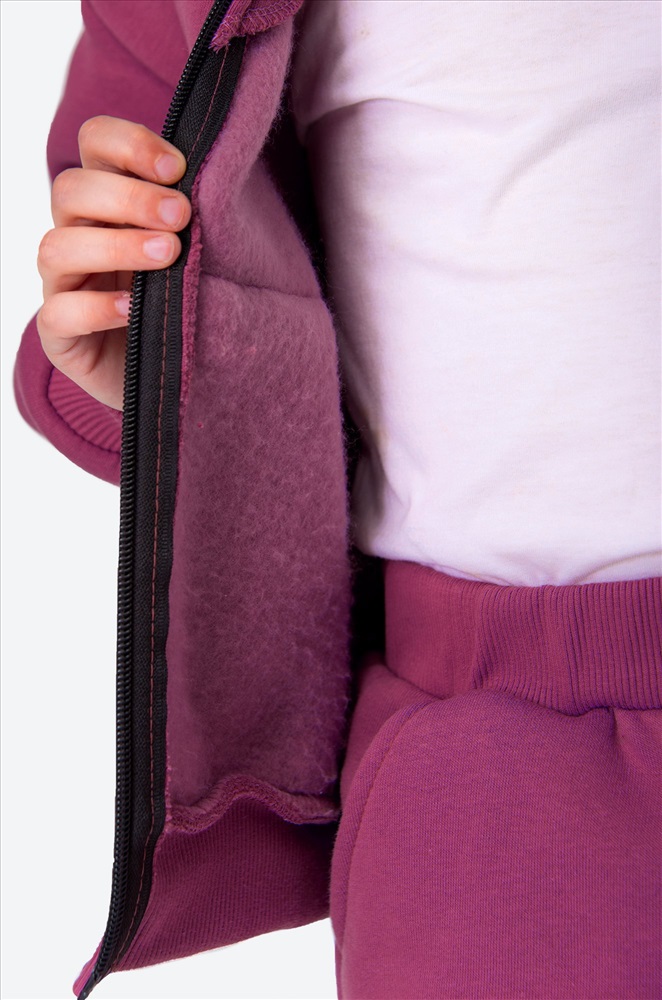 Утепленный брючный костюм сливового цвета идеален для зимы, а также холодных осенних и весенних дней. Хлопковый костюм станет отличным вариантом для прогулок осенью и весной. В нем удобно заниматься спортом на улице в холодный сезон.