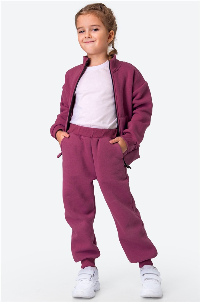 Теплый спортивный костюм с начесом для девочки выполнен из плотного футера трехнитки. Толстовка с застежкой на молнию, удобные карманы, крой оверсайз и мягкий манжетный пояс делают детский костюм невероятно уютным. Однотонный зимний костюм двойка поможет создать крутые повседневные образы.