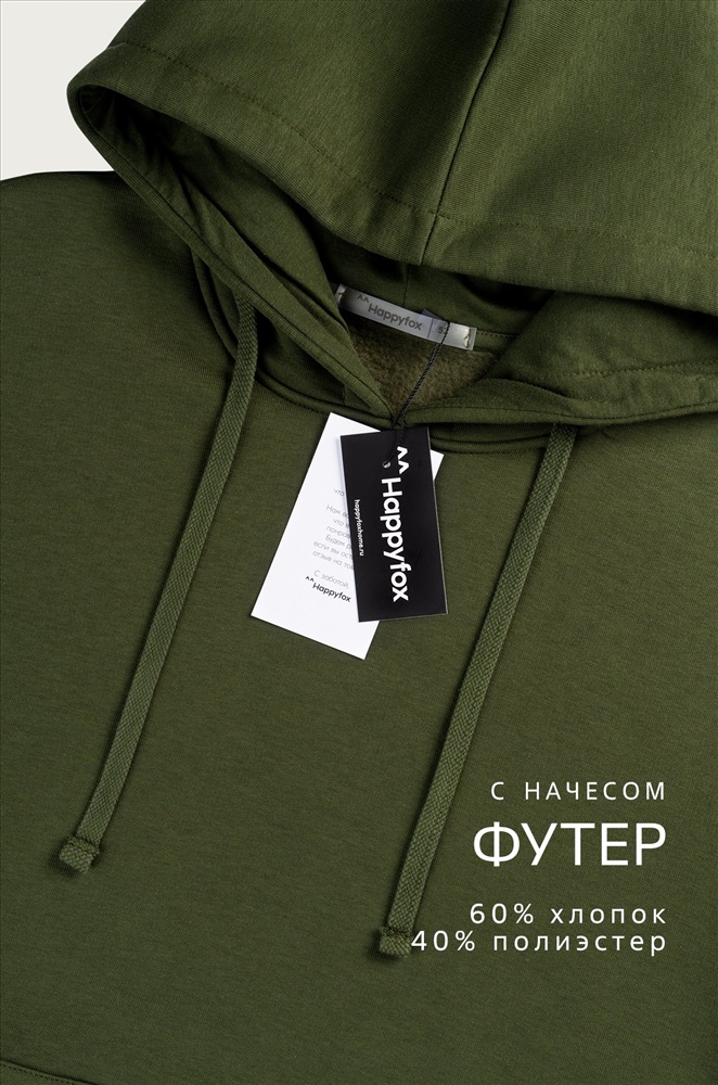 Бренд: Happyfox Серия: Happyfox- Теплая зима Страна: Узбекистан Состав: 60% хлопок, 40% полиэстер Материал: Футер с начёсом Плотность ткани: 320 г/м2 Цвет: хаки