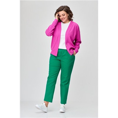 Страна производитель: Республика Беларусь Комплектация: Брюки, Ремень, Футболка, Кофта Сезон: Демисезон Коллекция: Весна, Весна 2023 Стиль: На каждый день Цвет: фуксия белый зеленый Материал: трикотаж, хлопок, текстиль Состав: Жакет трикотажный - вискоза 50%, па 50%. Брюки - хлопок 95%, эластан 5%. Футболка - хлопок 95%, эластан 5%. Рост: 164 см Описание: Жакет из уютного трикотажа сочного ягодного оттенка, свободного силуэта, застегивается на кнопки. По горловине и по низу планка. Плечо спущено. Рукав длинный, с манжетой. Комментарии к товару