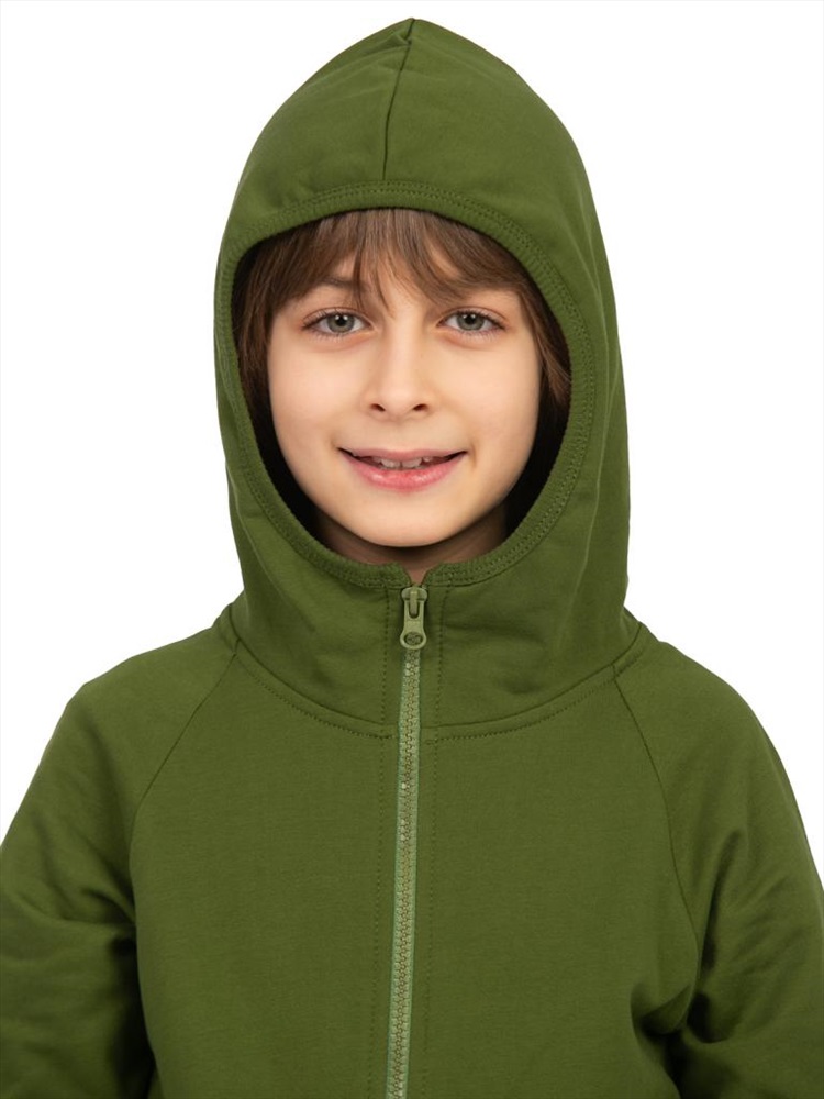 Толстовка с капюшоном на молнии, карманы боковые, низ изделия, низ рукава - рибана. Капюшон обработан резинкой. Тип ткани: Футер 2-х нитка с начёсом.