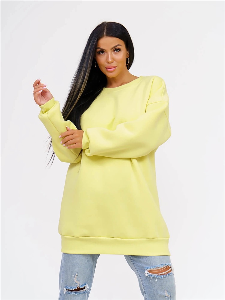 Состав: хлопок 80% / полиэстер 20% Цвет: желтый Толстовка женская оверсайз выполнена из качественного хлопкового трикотажа с начесом (футер 3-х нитка с начесом). который не деформируется при стирке и во время носки, благодаря этому материалу однотонный свиншот утепленный будет радовать вас своим видом и дарить приятные тактильные ощущения не один сезон. Стильная базовая толстовка подчеркнет достоинства фигуры. Теплая и уютная вещь в спортивном стиле заменит вам худи с начесом из флиса и школьную кофту, пуловер и толстовку с капюшоном, свитер и джемпер. Удлиненная толстовка свободного кроя деликатно скроет несовершенства полной фигуры. Объемная модель с длинным рукавом на манжете и округлым вырезом горловины удобна в повседневной носке: она не сковывает телодвижения, отлично комбинируется с одеждой разных стилей и фасонов, цветов и фактур. Комментарии к товару