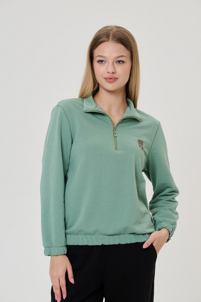 Состав: 80% хб 20% пэ Рост модели на фото, см: 170 Застежка: молния Силуэт: прямой Конструктивные элементы: резинка по низу изделия и рукава Вырез горловины: стойка Тип рукава: втачной Артикул: 3460-20