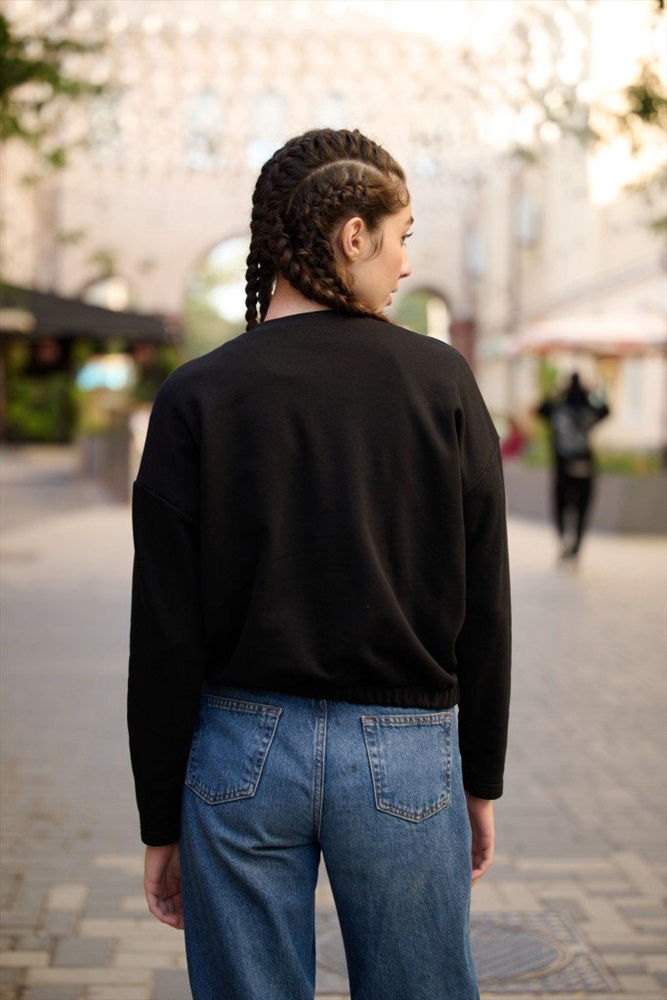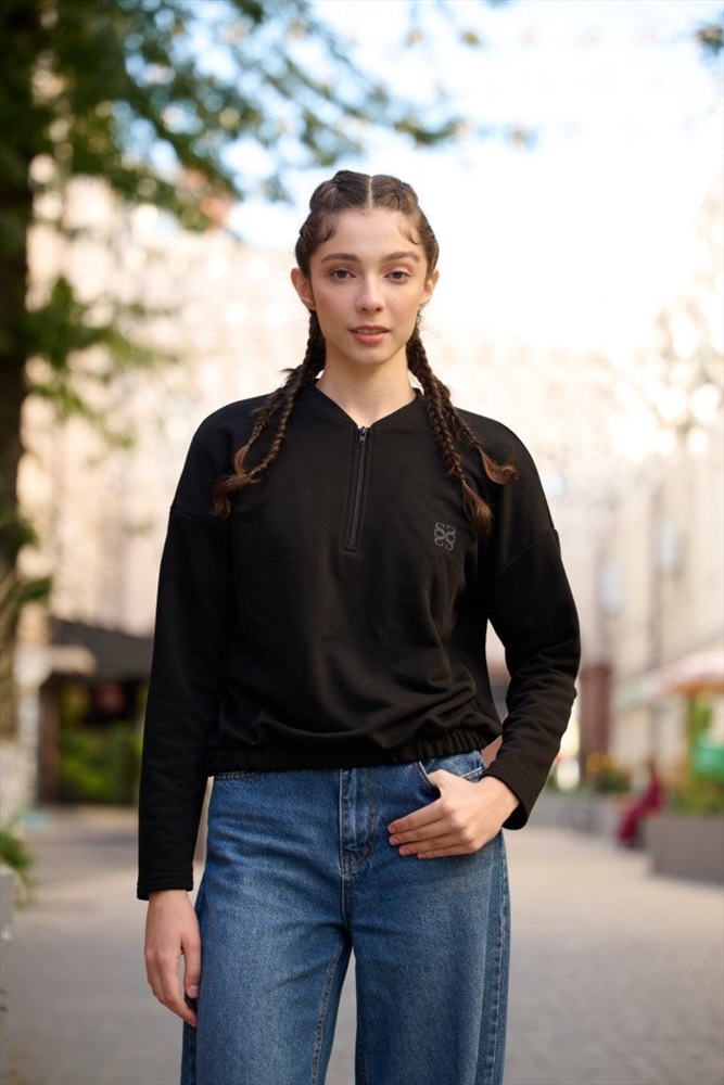 Состав: 80-хб 20-пэ Рост модели на фото, см: 175 Застежка: молния Силуэт: свободный Конструктивные элементы: резинка по низу изделия и рукавов Вырез горловины: круглый Тип рукава: спущенное плечо Артикул: 3470-02