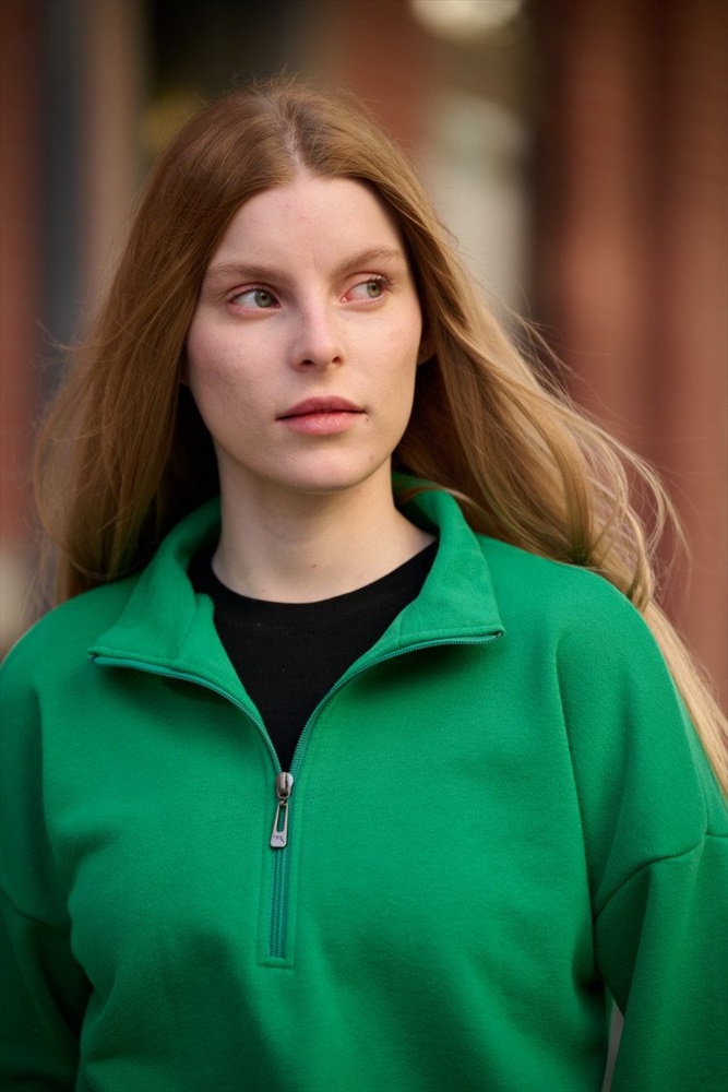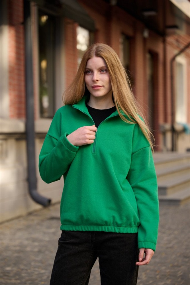 Состав: 80-хб 20-пэ Рост модели на фото, см: 175 Застежка: молния Силуэт: свободный Конструктивные элементы: резинка по низу изделия и рукавов Вырез горловины: воротник стойка Тип рукава: спущенное плечо Артикул: 3527-10