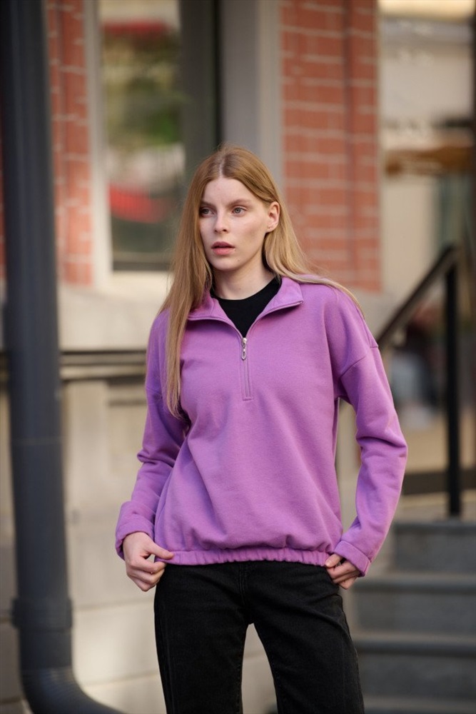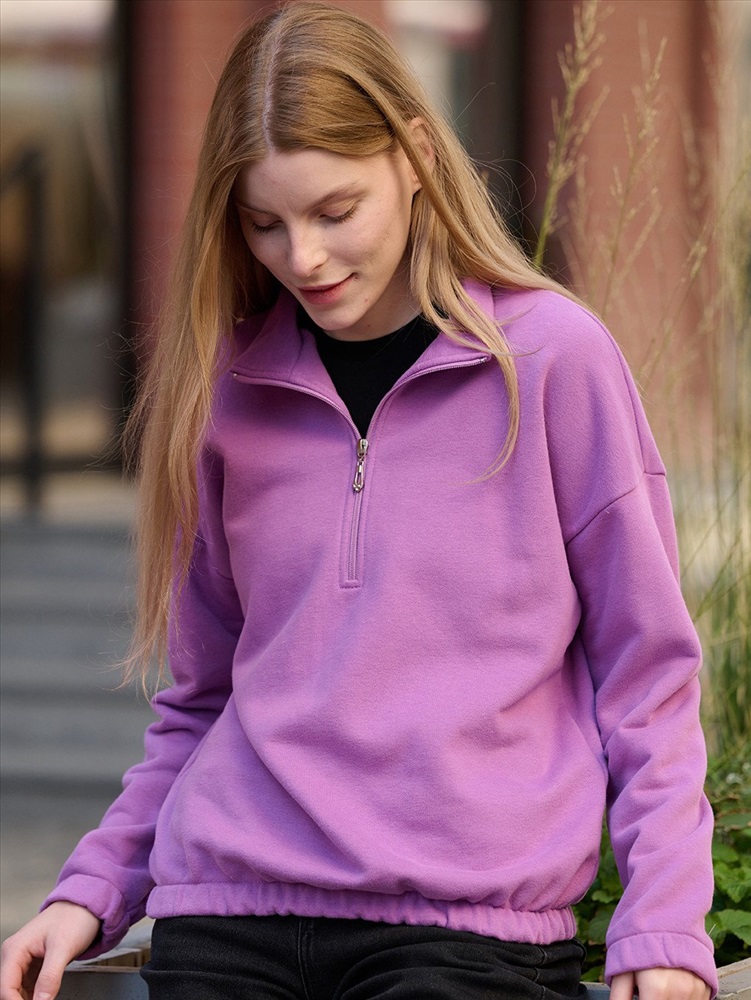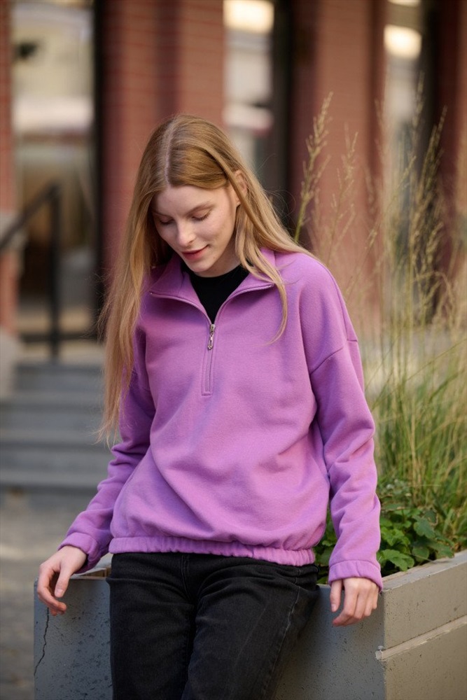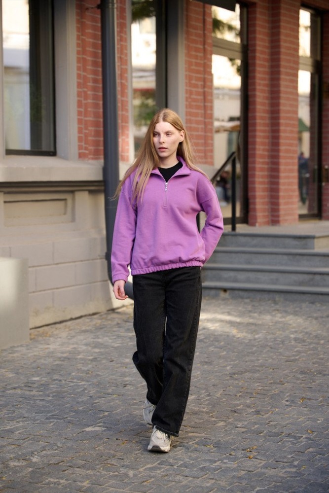 Состав: 80-хб 20-пэ Рост модели на фото, см: 175 Застежка: молния Силуэт: свободный Конструктивные элементы: резинка по низу изделия и рукавов Вырез горловины: воротник стойка Тип рукава: спущенное плечо Артикул: 3527-14