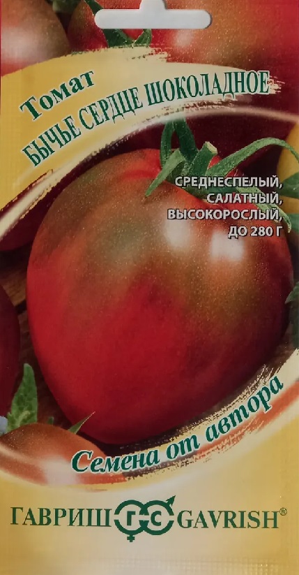 Урожайный среднеспелый (от всходов до плодоношения 110-115 дней) сорт томата для выращивания в теплицах и под временными пленочными укрытиями. Растение мощное, продуктивное, индетерминантное. Плоды плотные, слаборебристые, очень крупные, сердцевидной формы (иногда на кусте могут быть томаты округлой формы), сочные, дружно созревают, массой 240-280 г. Окраска незрелого плода — зеленая, зрелого — кирпично-коричневая. Томат хорош в свежих салатах и консервирования кусочками в собственном соку. Посев на рассаду проводят в конце февраля-начале марта. Пикировка в фазе первого настоящего листа. Высадка рассады в теплицы — в конце апреля-начале мая. Обязательна подвязка растений через несколько дней после высадки. Схема посадки: 40х60 см. Семена после уборки сохраняют всхожесть в течение 10 лет при оптимальных условиях хранения. Рекомендуется увеличить норму высев Фасовка 0,1г Комментарии к товару