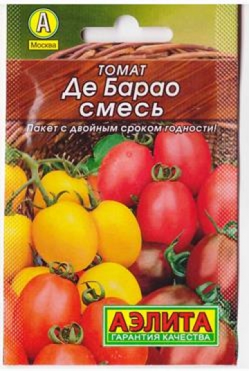 Смесь четырех популярных сортов Де Барао – с красными, оранжевыми, розовыми и черными плодами-сливками. Рекомендуется для теплиц. Растения индетерминантные, высотой 2 м. Вступают в плодоношение на 115-120 дней от всходов. Плоды массой 50-70 г, плотные, вкусные, лежкие. Для свежего потребления и цельноплодного консервирования. Урожайность 6-8 кг/м2.