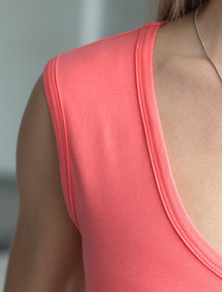 Топ выполнен из премиального хлопка с эластаном. V- вырез подчеркивает линию декольте и визуально вытягивает шею. Лаконичная базовая модель впишется в любой гардероб и дополнит многослойные образы. Материал изделия хорошо тянется и гарантирует идеальную посадку по фигуре. Из украшений только металлическим логотипом бренда.