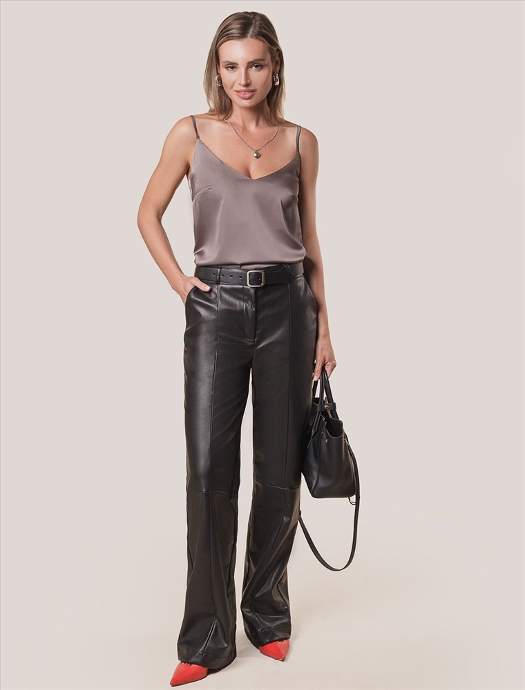 Элегантный топ кофейного цвета с регулируемыми лямками выполнен из сатиновой ткани премиального качества, сочетающей полиэстер и эластан в составе. Этот уникальный дуэт материалов обеспечивает комфортную посадку топа. Универсальный крой делает топ идеальным базовым элементом как для повседневных образов с джинсами или юбкой, так и для вечерних луков под жакет или кардиган.