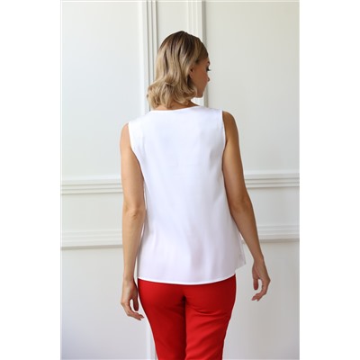 Топ свободного кроя, без вытачек. Широкие бретели. Круглый вырез горловины.