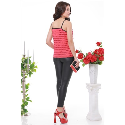 Цвет: Коралловый Топ с рюшами — невероятно женственная модель, которая украсит любой образ и добавит ему нотки романтики. Полуприлегающий фасон на тонких бретелях с вырезом каре подчеркивает женственные изгибы, создает акцент на привлекательных и утонченных линиях плеч и ключицах. Однако все внимание приковывают нежные, особенно актуальные в этом сезоне рюши. Романтичная деталь придает женственности и легкости, а также делает любой наряд более оригинальным и стильным. Эффектный топ будет прекрасно смотреться в паре с юбками, брюками, джинсами или шортами различных фасонов. А легкая трикотажная ткань и универсальная длина позволяют носить его как в заправленном виде, так и навыпуск. Рекомендуется стирать изделие в деликатном режиме без отжима при температуре не выше 30 градусов. Блузка: