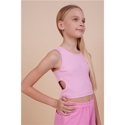 Выбирайте нужный размер по таблице размеров на фото. Цвет товара на экране вашего устройства может отличаться от цвета изделия вживую. Кроп-топ из модной ткани в рубчик для девочки. Преобладающие в составе ткани хлопок и вискоза делают эту модель мягкой, дышащей и очень комфортной для ребёнка. Благодаря эластану изделие сохраняет форму. По бокам небольшие круглые вырезы — один из актуальных летних трендов. Топ лаконичного дизайна прекрасно сочетается с различными шортами и юбками. Отличный выбор для летнего отдыха! Модель представлена в универсальных цветах – белый, голубой, желтый, розовый, лазурный и яблочный.
