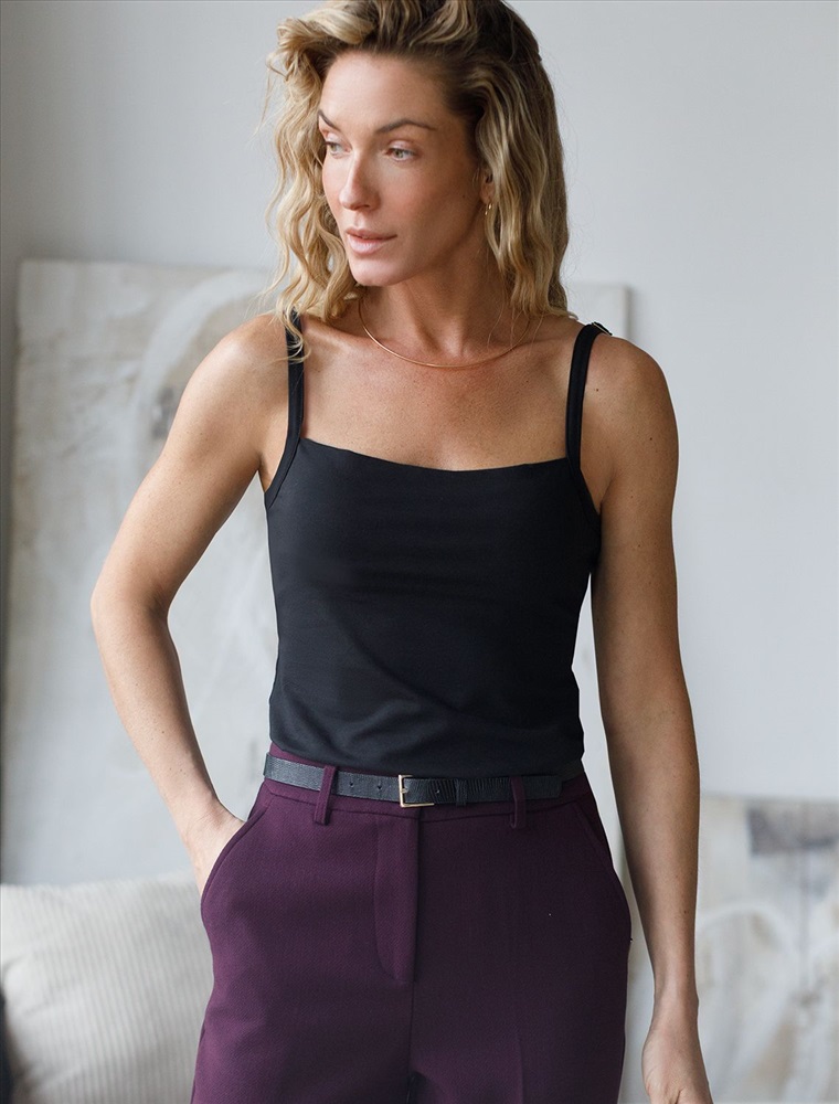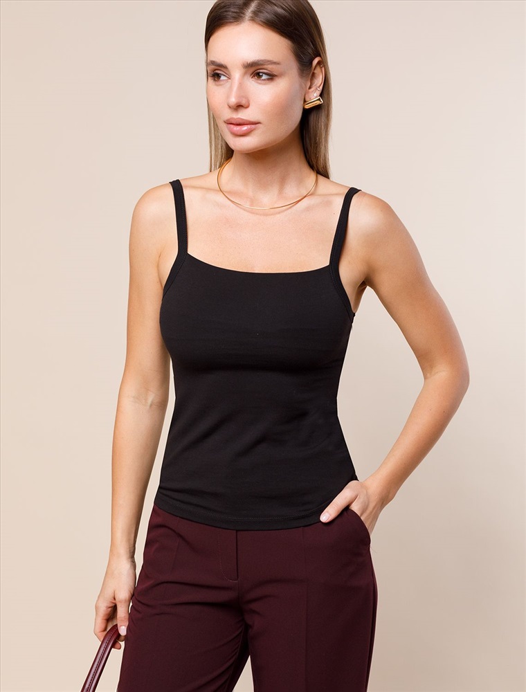 Плотность: 170 Г/м2 Параметры модели на первом фото: Рост 170, бюст 89, талия 63, бедра 92 Стильный и базовый топ черного цвета полуприлегающего кроя идеально подходит для девушек и женщин всех возрастов. Двуслойная зона бра. Линия декольте образована посредством сгиба полотна без отсрочки и закреплением обоих слоев в шве проймы. Удобные регулируемые бретели. Прямой силуэт подходит любому типу фигуры. Квадратный вырез горловины - тренд этого сезона. Он выполнен из качественной дышащей ткани, что обеспечивает комфорт в жаркую погоду. Однотонный дизайн позволяет легко сочетать его с различными предметами гардероба, создавая элегантный повседневный образ. Такая модель майки на тонких бретельках выглядит утонченно и изящно, подчеркивая достоинства фигуры. Этот топ отлично подходит на высокий и низкий рост, а также доступен в больших, включая 56, и маленьких размерах. Регулируемые бретельки обеспечивают удобную посадку, не сковывая движений. Такой вариант идеально подойдет как для работы, так и для деловых встреч, добавляя нотку женственности в любой наряд. Одевайте этот комфортный топ в любое время года и наслаждайтесь свободой движений без ущерба для стиля. Комментарии к товару