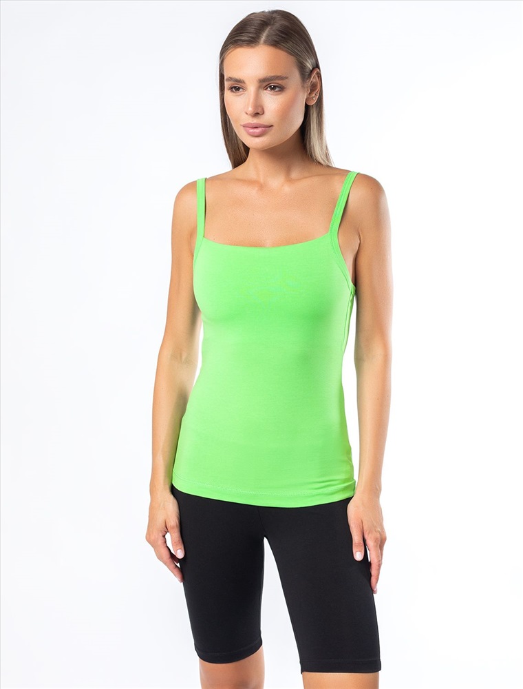 Параметры модели на первом фото: Рост 170, бюст 89, талия 63, бедра 92 Базовый топ регулируемых бретелях из премиального хлопка. Двуслойная зона бра. Линия декольте образована посредством сгиба полотна без отсрочки и закреплением обоих слоев в шве проймы. Прямой силуэт подходит любому типу фигуры. Квадратный вырез горловины - тренд этого сезона. На спине расположена металлическая нашивка - логотип бренда. Самое высокое качество хлопковых волокон с добавлением ПУ. Идеально держит форму и сохраняет внешний вид в течение долговременного использования. Комментарии к товару
