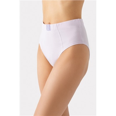 Трусы женские макси с высокой посадкой из кулирной глади. На передней детали рельефы с отделочными строчками. Ластовица отлетная по переднему краю. Задняя деталь цельная. Талия обработана швом подгибку с эластичной тесьмой внутри (внутренняя эл.тесьма). Ножки обработаны швом вподгибку на плоскошовной машине. По центру на передней детали на поясе декор - тканая этикетка.