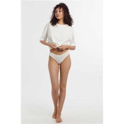 Трусы женские, средняя линия талии, силуэт - бразилиано. Передняя и задняя детали выполнены из рибаны. Верхний срез трусов обработан бейкой поперечной из рибаны, внутри жилка 6мм. Нижние срезы обработаны бейками поперечными из рибаны. Подкладка ластовицы из хлопка, отлетная по верхнему срезу. Посередине бейки по верхнему срезу передней и задней детали застрочена «птичка».