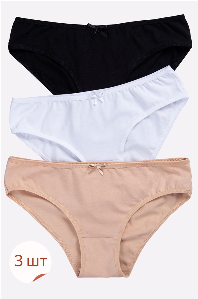 Уверенность в каждом движении! Набор детских трусов слипов 3 штуки для девочек-подростков выполнен из дышащего хлопка – идеальное решение на каждый день! Эластичная резинка, мягкая ластовица, плоские анатомические швы – эти трусики для детей будут комфортны в любой ситуации! Слипы представлены в классических цветах и украшены милым атласным бантиком.