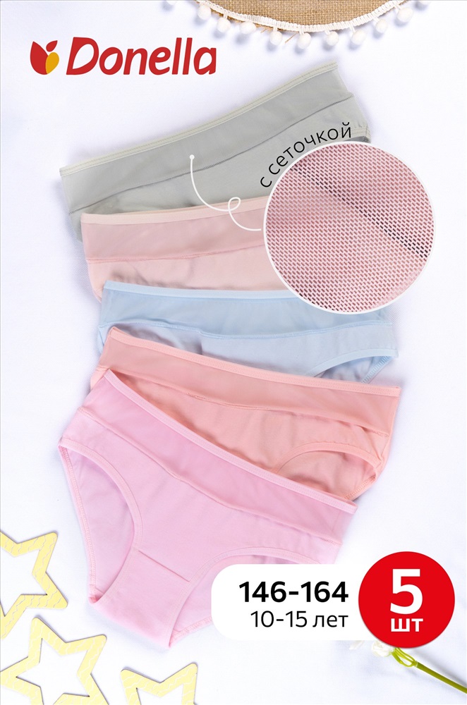 Трусики выполнены из приятной к телу трикотажной ткани. Благодаря добавлению эластана они прочные и эластичные. Сетчатая вставка отлично пропускает воздух и позволяет коже дышать. Хлопковые трусы выдерживают многочисленные стирки, сохраняя форму и цвет. В комплекте трусики из трикотажа 5 шт. Благодаря мягкой резинке они крепко держатся на теле, не сдавливая кожу. Аккуратные швы не натирают, а комфортная средняя посадка дарит свободу движений. Базовые слипы отлично подходят для школы. Они идеальны для повседневных прогулок и активных игр. Подростковые трусы останутся незаметными под школьной формой. В них удобно заниматься спортом в секциях и на уроках физкультуры. Трусики отлично подходят для танцев, спортивных занятий по бегу и гимнастике. Комментарии к товару