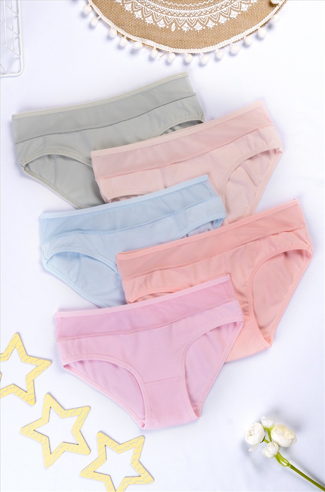 Набор детских трусов слипов 5 штук из дышащего хлопка – отличный выбор на каждый день для девочек-подростков! Трусики для детей отлично тянутся и не сковывают движений. Слипы представлены в базовых пастельных тонах и украшены вставкой из мягкой сеточки.