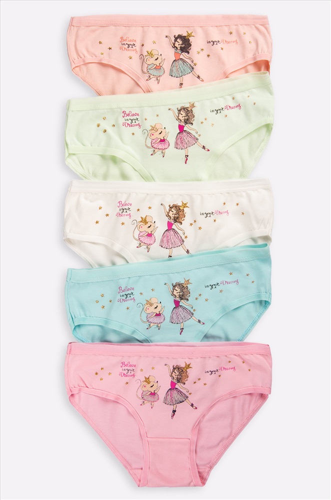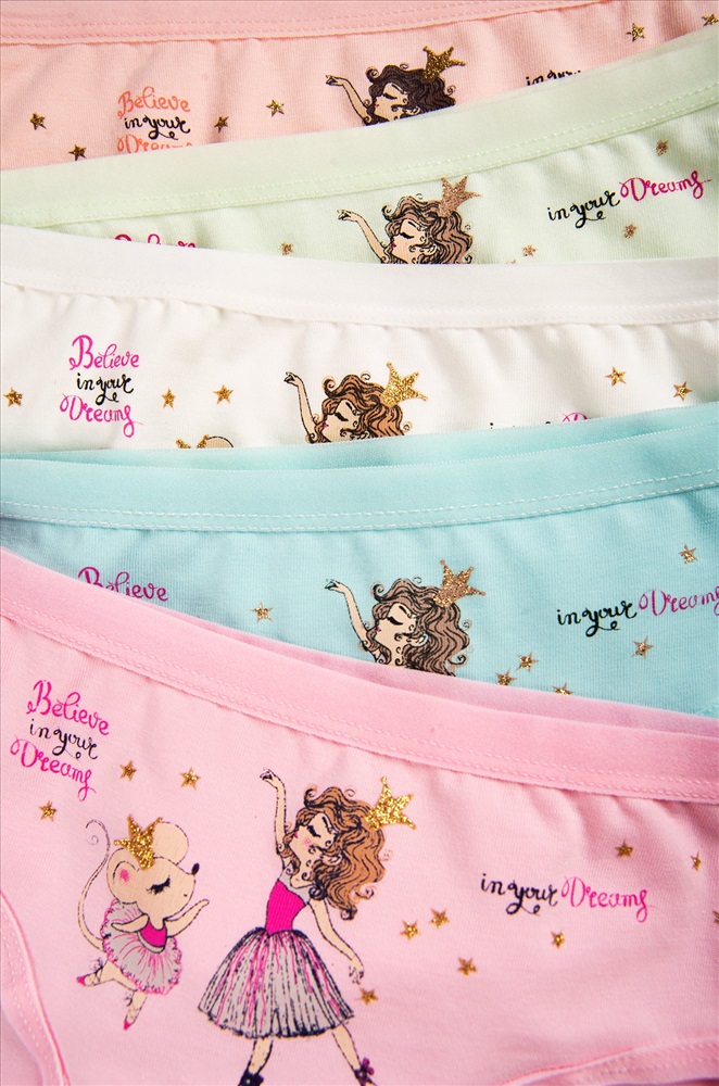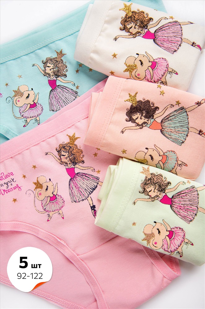 Набор трусиков 5 штук для девочек выполнен из натурального хлопка. Небольшое количество эластана обеспечивают прекрасную посадку по фигуре и комфорт в течение всего дня.