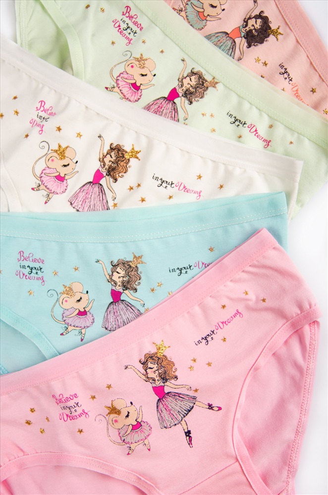 Слипы с блестящими принтами понравятся маленькой принцессе. Детские трусики подарят прекрасное настроение и создают ощущение комфорта в течение всего дня.