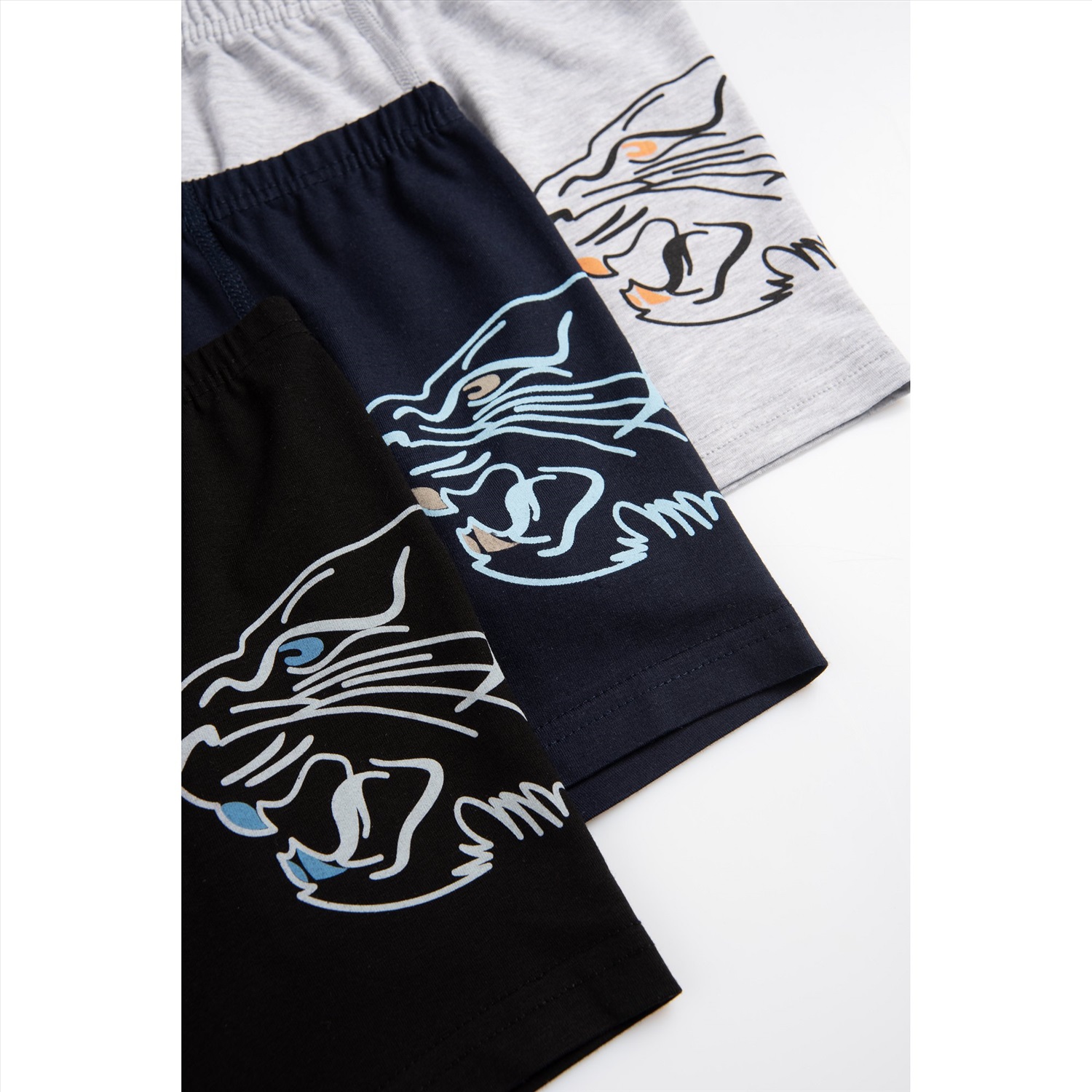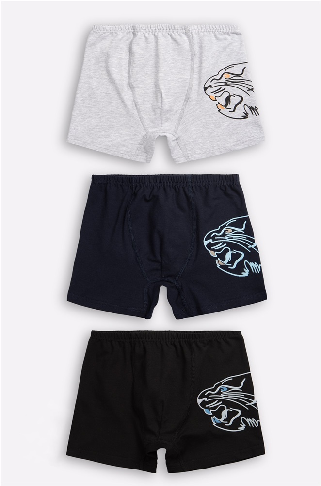 Набор детских трусов боксеров из 3 штук для мальчиков-подростков выполнен из мягкого хлопка, который отлично пропускает воздух. Эластичная резинка, плоские анатомические швы, удобный гульфик – боксеры для детей идеальны для любой ситуации! Трусы представлены в классических цветах и украшены принтом тигр. Повседневные трусы с рисунком выполнены из легкой трикотажной ткани. Благодаря добавлению эластана хлопковые трусы-шортики отлично тянутся и не теряют форму даже после частых стирок. Боксеры из турецкого трикотажа идеальны на каждый день. В комплекте 3 шт. Комментарии к товару