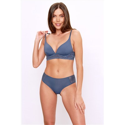 Трусы-хипстеры. Эластичное полотно и кружево. Мягкая резинка по талии. Подгиб и плоский шов по краю ножек. Ластовица из хлопка. Ажурный край.