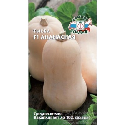 Сорт среднеспелый. Растение длинноплетистое, средней мощности, формирует одновременно 5-6 плодов. Плоды грушевидные, бежево-кремовые, массой 1,5-2,5 кг, с тонкой и плотной корой. Мякоть желто-оранжевая, толстая, плотная, сладкая, с мускатным ароматом, усиливающимся при хранении. Одна из самых вкусных и полезных тыкв, с содержанием сахара до 10%.